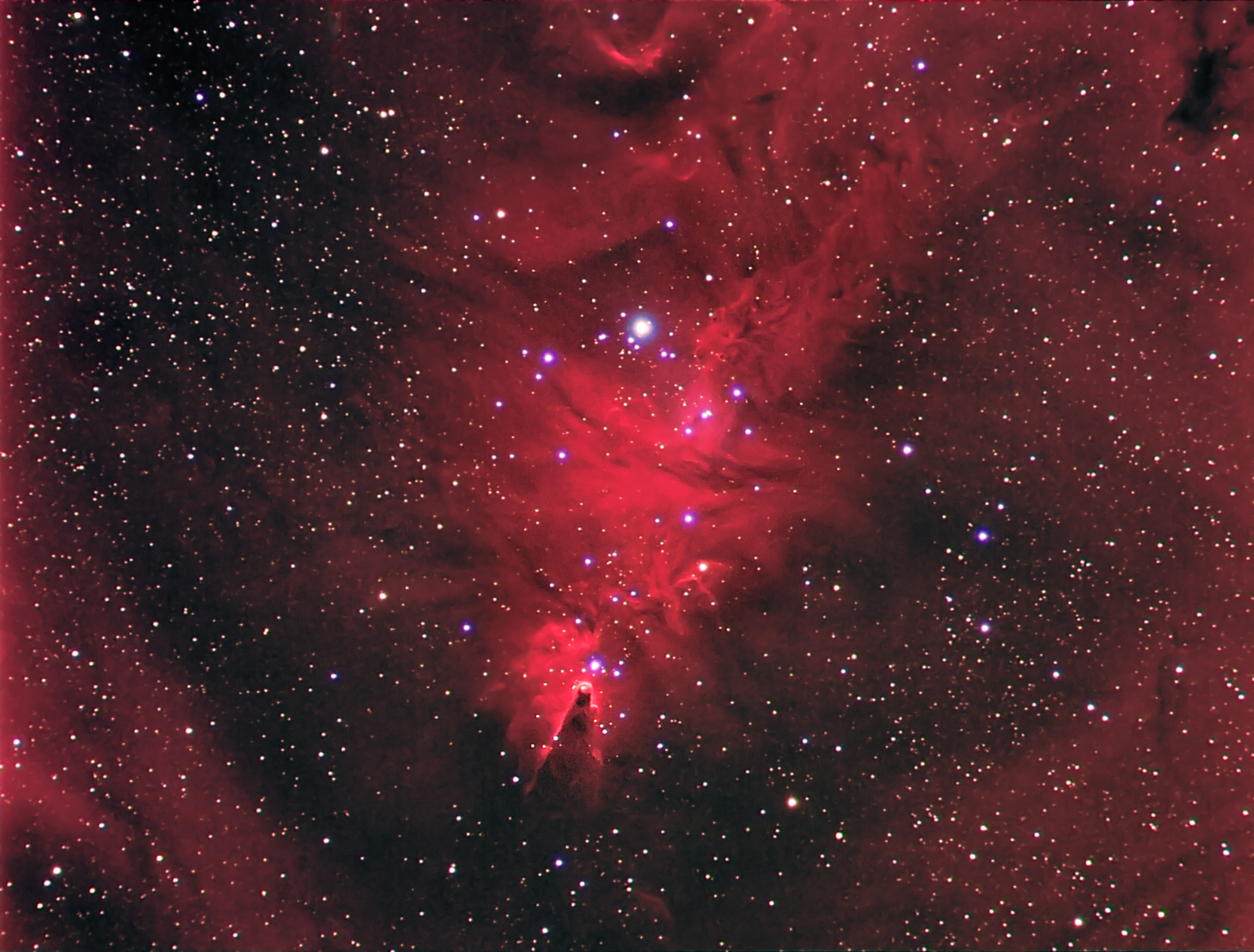 Unter NGC 2264 findet man im Sternbild Einhorn einen Sternhaufen, einen Dunkelnebel (Konusnebel) und eine HII-Region. Eine teilweise klare Nacht bei uns in Peine reichte aus, um ihn im H-Alpha-Licht und allen drei Farben aufzunehmen.