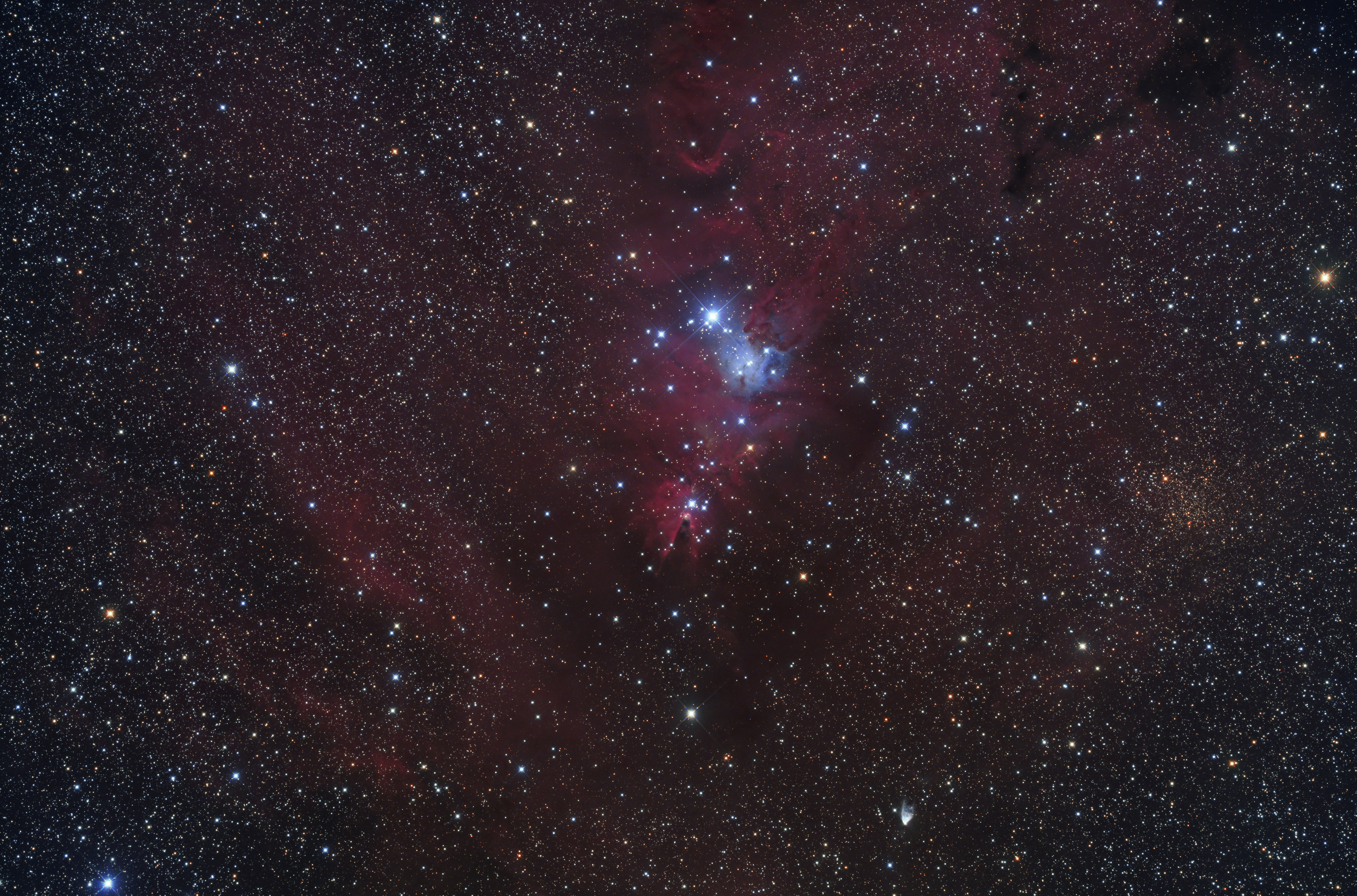NGC 2264 beschreibt ein Gebiet, das aus einem Teil eines HII-Gebiets (mit einer davor liegenden Dunkelwolke, dem Konusnebel), einem Sternhaufen (dem Weihnachtsbaum-Sternhaufen) und dem diffusen Nebel dazwischen besteht. Es befindet sich in etwa 2500 Lichtjahren Entfernung im Sternbild Einhorn.