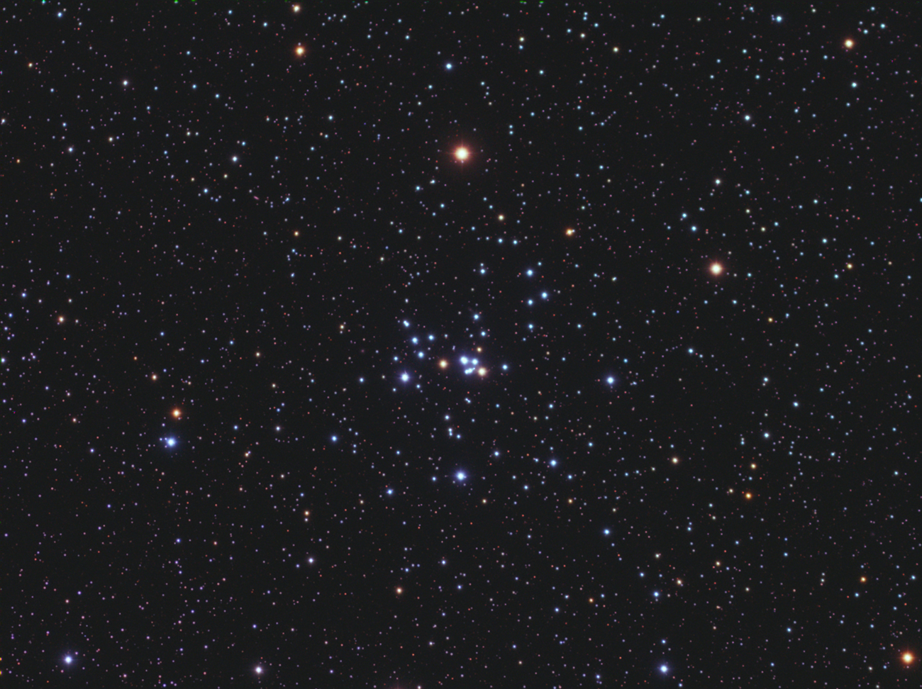 Dieser reizvolle und farbenprächtige Haufen ist bereits für ein Fernglas ein prächtiges Objekt.