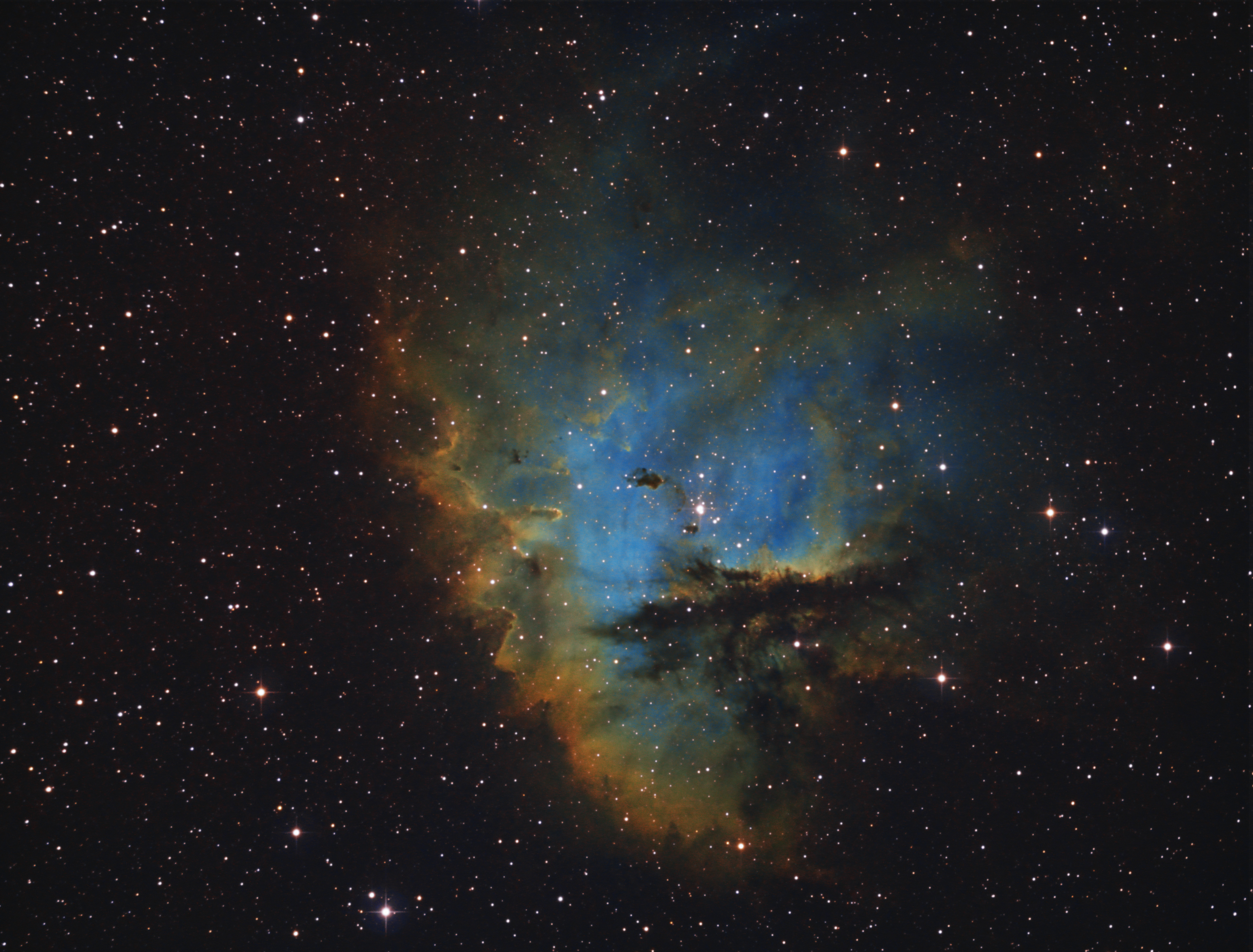 | Belichtungszeit | S-II/Ha/O-III 36/72/72 min, Gesamtbelichtung 180 min |
