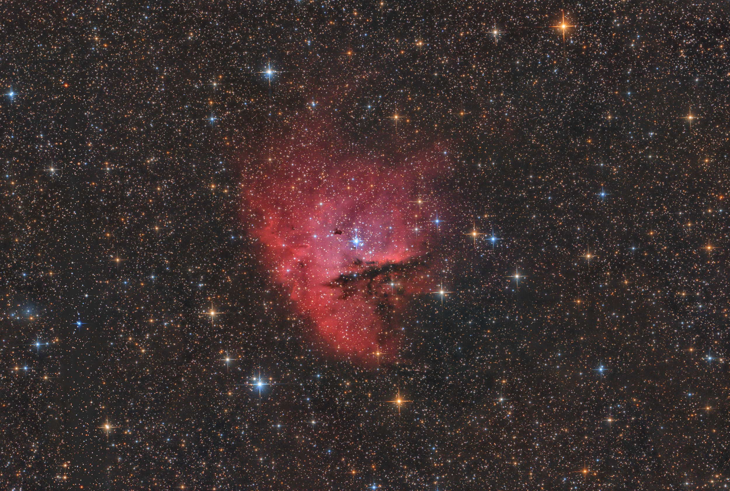 Der Pacman-Nebel ist ein ausgiebiges H-Alpha-Gebiet inklusive Sternentstehung und Sternhaufen im Sternbild Kassiopeia. Nach einigen erfolglosen Anläufen (Seeing, Wolken) ist es mir geglückt, das Objekt bei perfektem Himmel über Großmugl (Österreich) abzulichten.