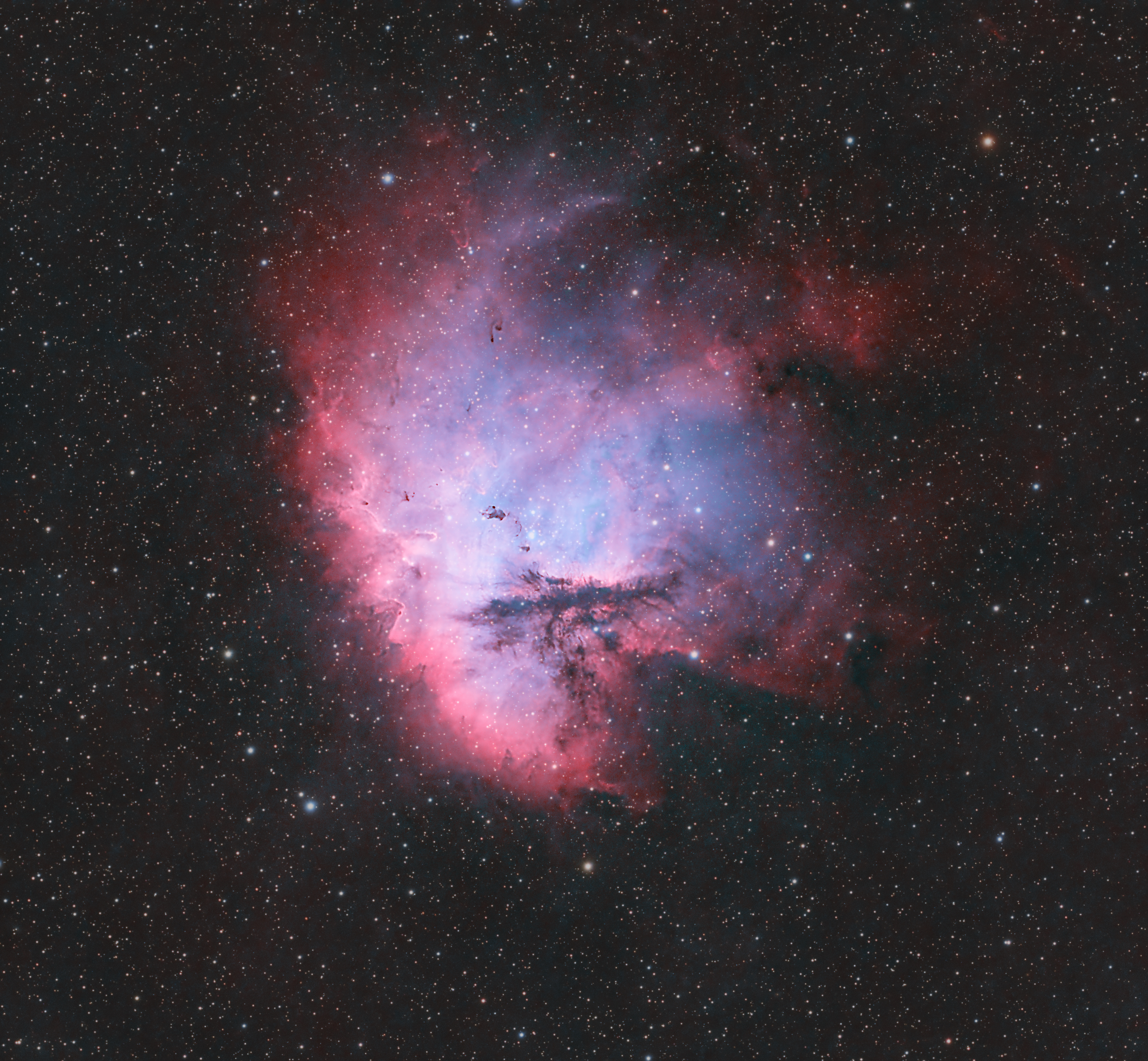 Samstagnacht wurde es nach längerem Warten doch noch klar, also nichts wie raus auf die Terrasse. Der große Vorteil des Asiair ist meiner Meinung nach die sehr kurze Zeit vom aus dem Keller holen bis zur ersten Belichtung, das dauert in der Regel bei mir 20 bis 30 min. Ich habe NGC 281, den Pacman-Nebel angefahren und belichtet. Da das Objekt doch recht hell ist, braucht es nicht so viel Belichtungszeit, ich war mir auch nicht sicher, ob die restliche Nacht klar bleibt. Der Pacman-Nebel ist ein Emissionsnebel im Sternbild Kassiopeia am Nordsternhimmel, im Nebel eingebettet ist der offene Sternhaufen IC 1590 und einige große Dunkelwolken und Globulen. Wenn das Wetter mitspielt werde ich noch S2/O3 und RGB zu den H-Alpha/O3 Daten hinzufügen.