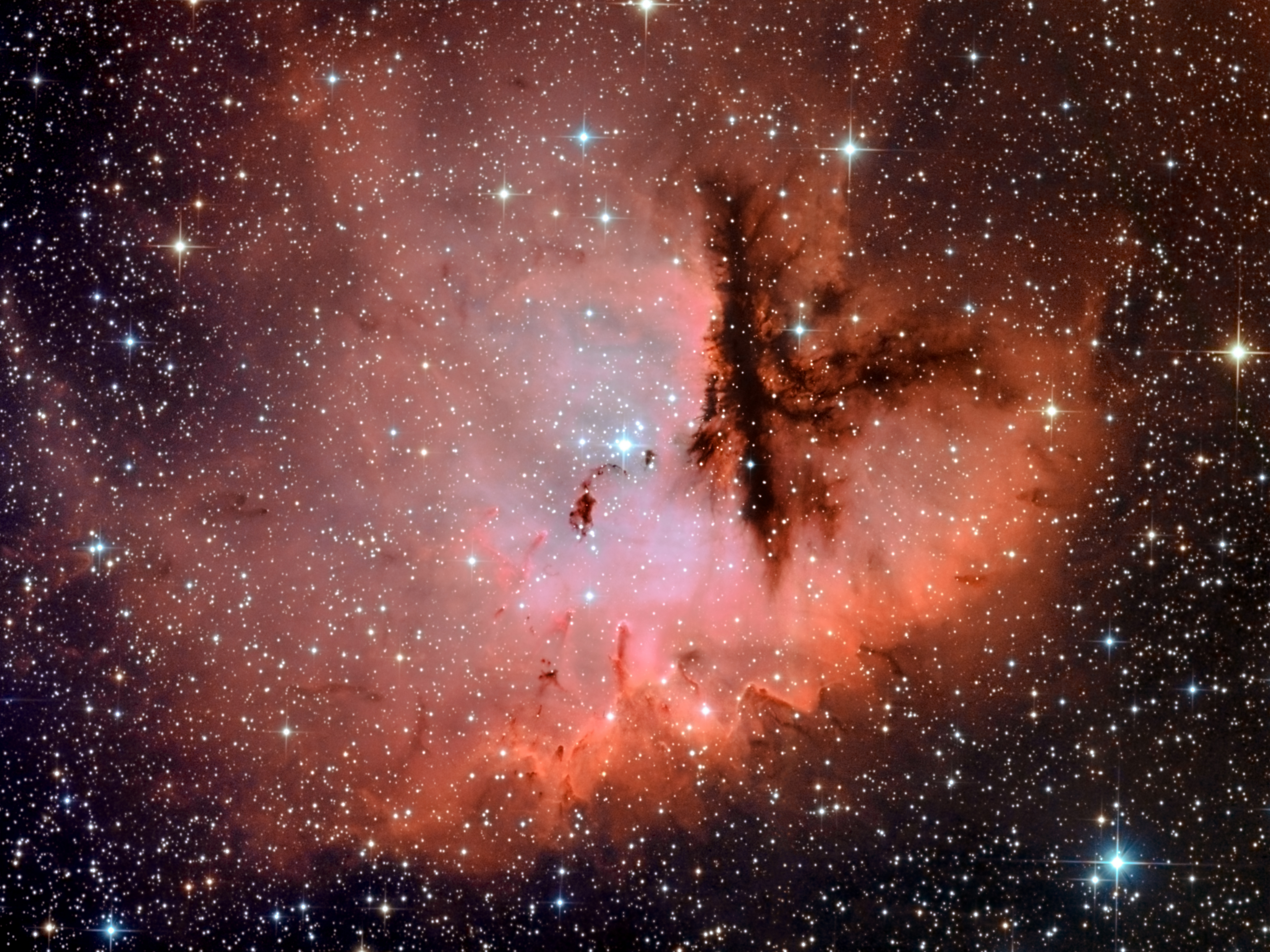 Pacman NGC 281 mit einem 12"-Newton und Moravian G2-8300 in der Nähe von Trier aufgenommen. LRGB und H-Alpha.