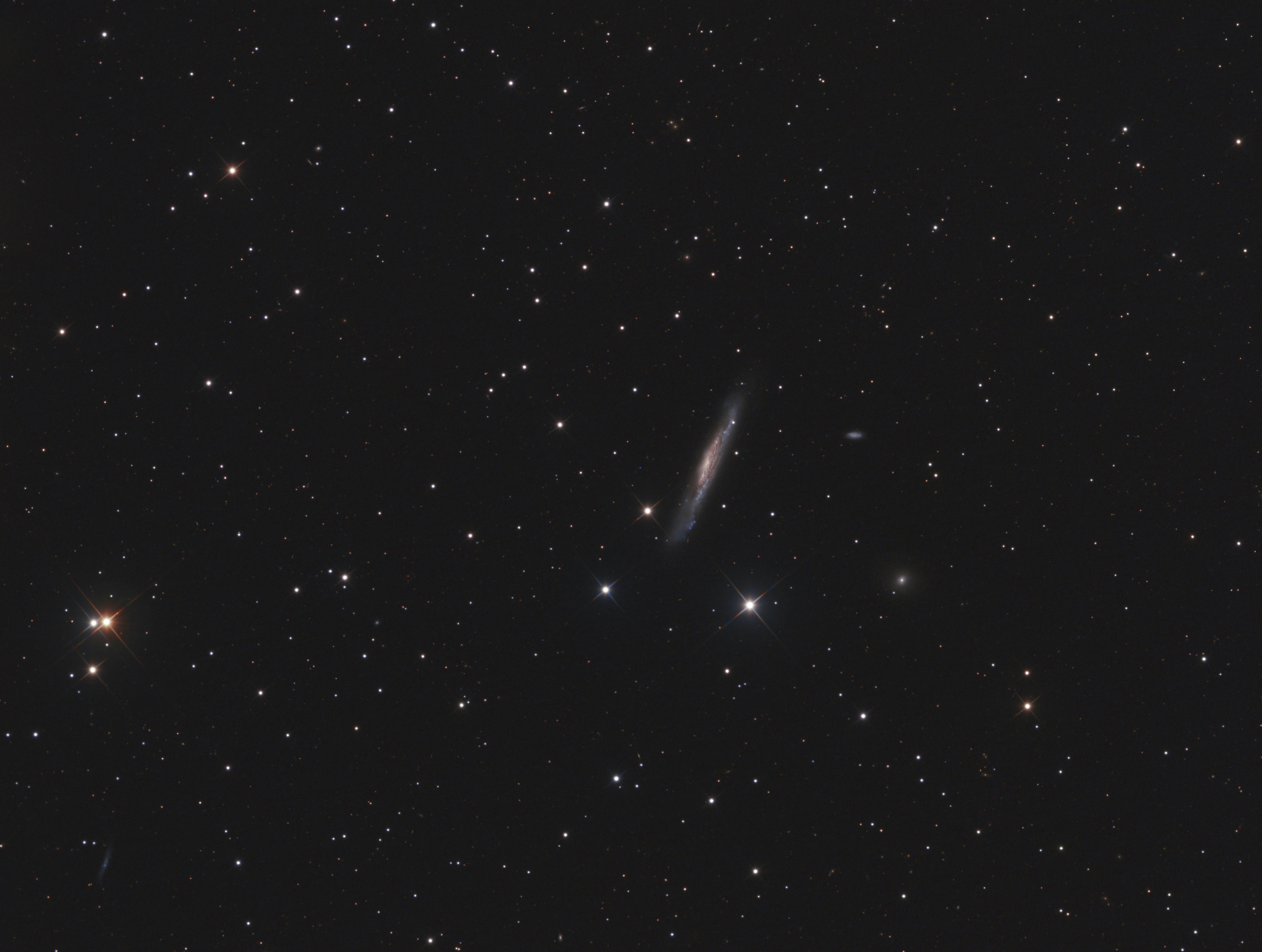 NGC 3079 ist eine Balken-Spiralgalaxie mit aktivem Galaxienkern im Sternbild Großer Bär. Sie ist schätzungsweise 52 Millionen Lichtjahre von der Milchstraße entfernt und hat einen Durchmesser von etwa 125000 Lichtjahren. Aus dem Zentrum dieser Galaxie schießen heiße Gase heraus, die etwa 3000 bis 3500 Lichtjahre groß sind. Sie stammen von heftigen Sternbildungen, sogenannten Starbursts. NGC 3073 ist eine elliptische Zwerggalaxie mit aktivem Galaxienkern vom Hubble-Typ E/SB0 im Sternbild Großer Bär am Nordsternhimmel. Sie ist schätzungsweise 53 Millionen Lichtjahre von der Milchstraße entfernt.