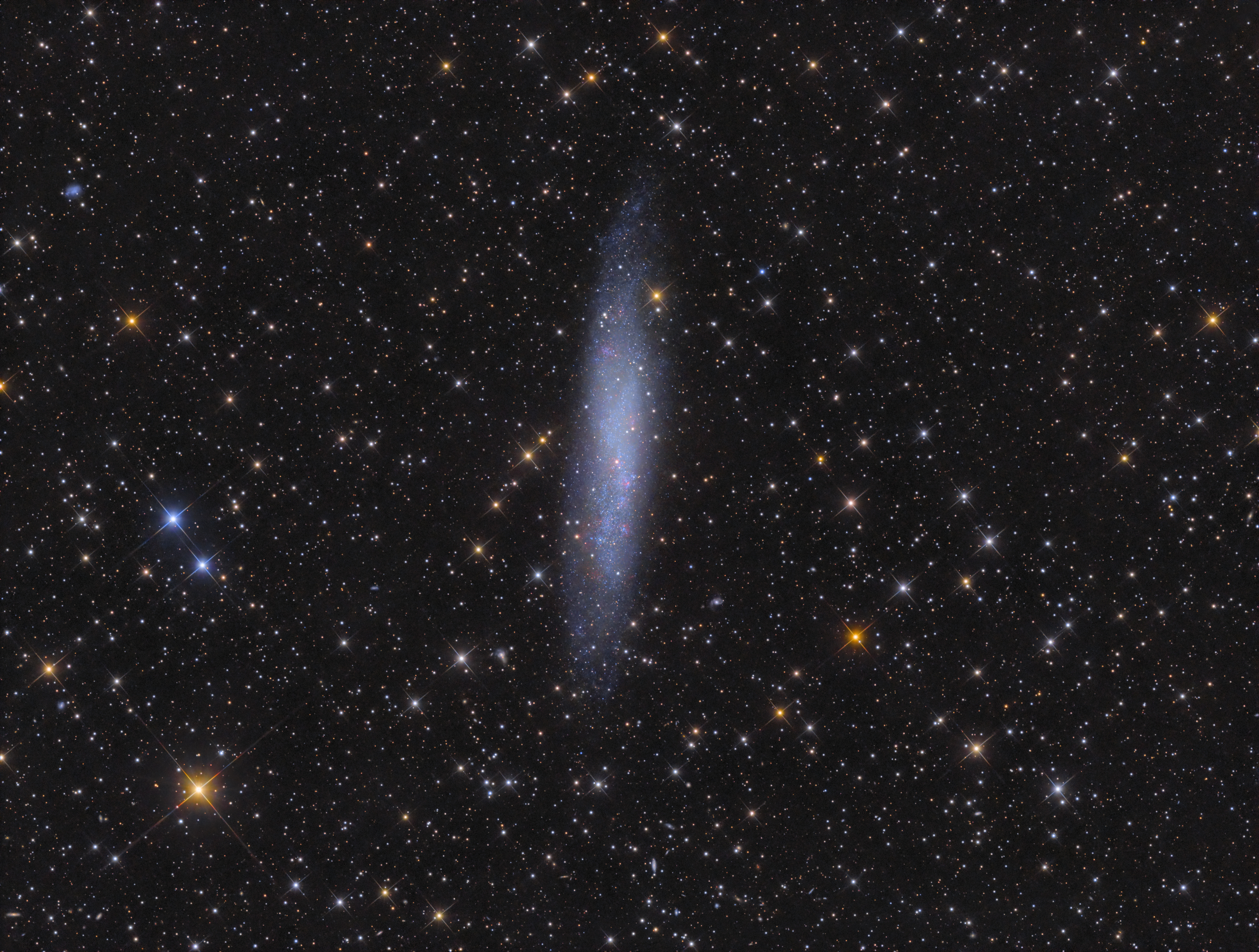 NGC3109 ist eine nahegelegene (4,5 Millionen Lichtjahre) Zwerggalaxie in der südlichen Wasserschlange (Hydra). Sie ist entweder vom irregulären Typus oder eine von der Seite gesehene Spirale. Die hellsten Sterne sind aufgelöst, und einige HII Gebiete zu sehen. Sie interagiert vermutlich mit der Antlia-Zwerggalaxie und hatte eine nahe Begegnung mit ihr.