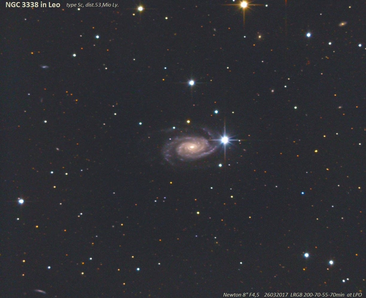 NGC 3338 in Leo ist eine schöne, oft übersehene Sc-Spirale in 53 Millionen Lichtjahren Entfernung.