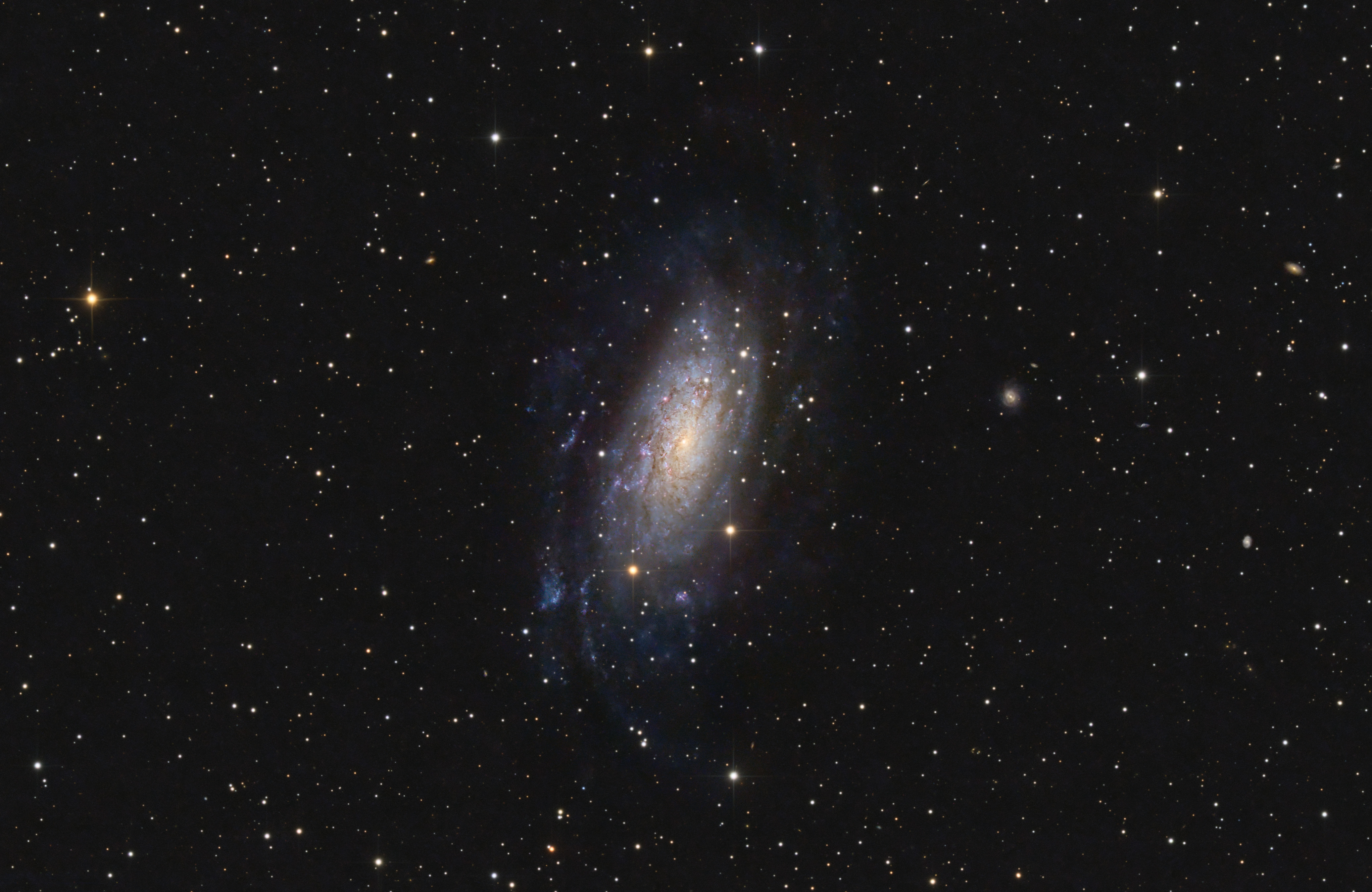 NGC 3621 ist eine große Spiralgalaxie im Sternbild Wasserschlange mit einem hellen inneren Bereich umgeben von deutlich schwächeren ausladenden Spiralarmen. Im Zentralbereich befinden sich zahllose rötliche Nebelgebiete und feine dunkle Staubstrukturen.