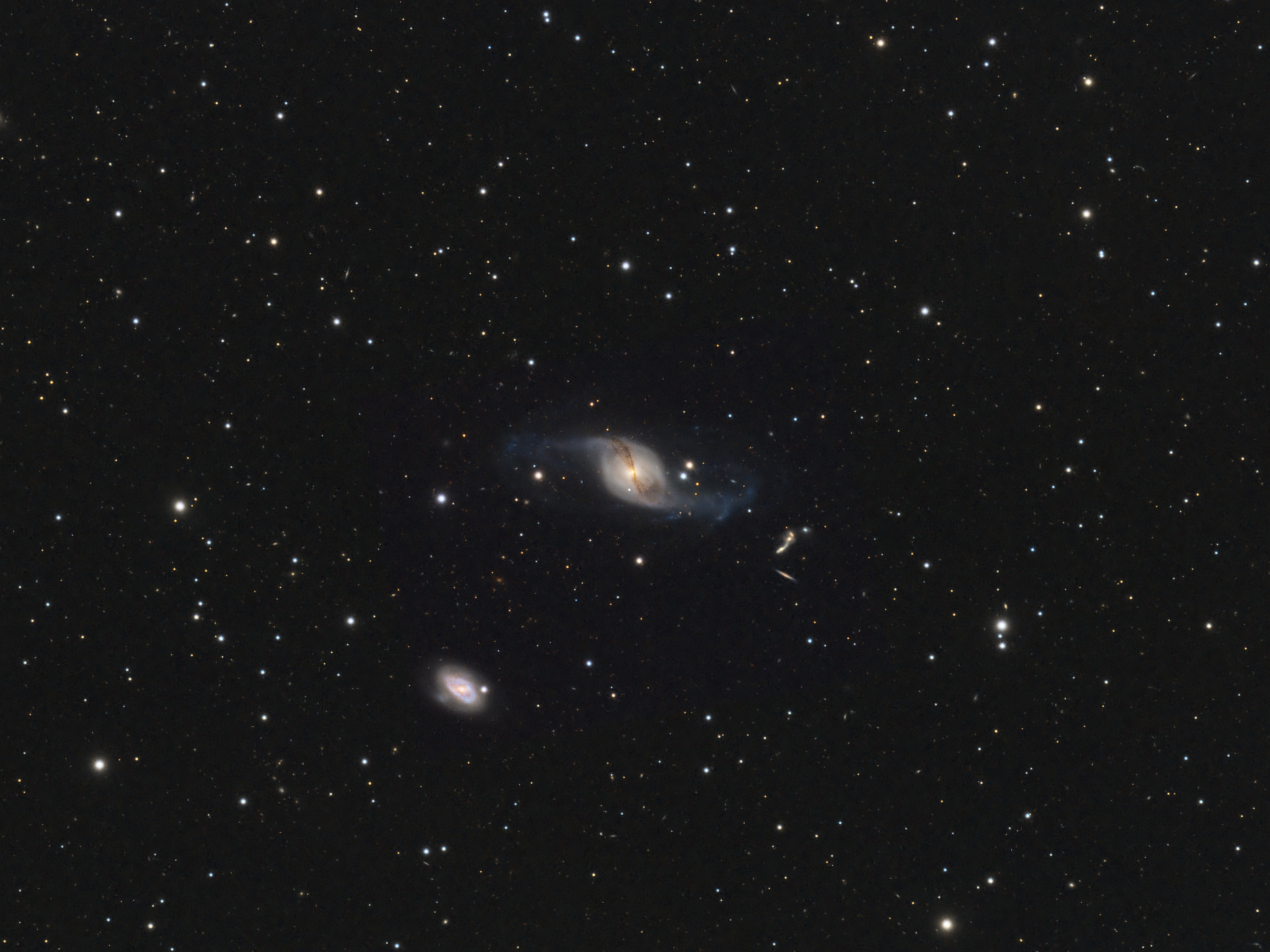 In drei Nächten im März habe ich die Balken-Spiralgalaxie mit ihrer Nachbarin bei teilweise schlechter Durchsicht aufgenommen.
