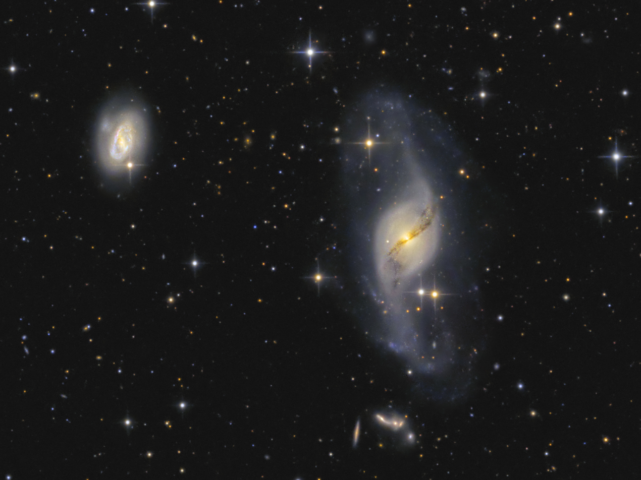 steht in 49 Milliionen Lichtjahren Enfernung, während die HCG 57 ca. 10x so weit entfernt ist. Viele weitere Galaxien bereichern das Feld.
