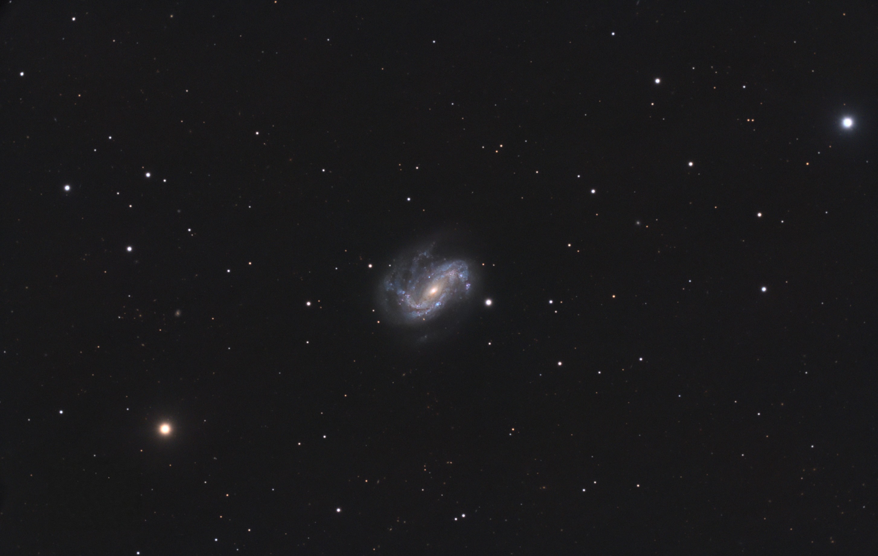 NGC 4051 ist eine etwa fünf Bogenminuten große Galaxie nicht weit von Messier 106. Auffällig bei der Bildbearbeitung war der helle Kern, was gut dazu passt, dass sie als Seyfert-Galaxie klassifiziert wird, also als Galaxie mit aktivem Galaxienkern.