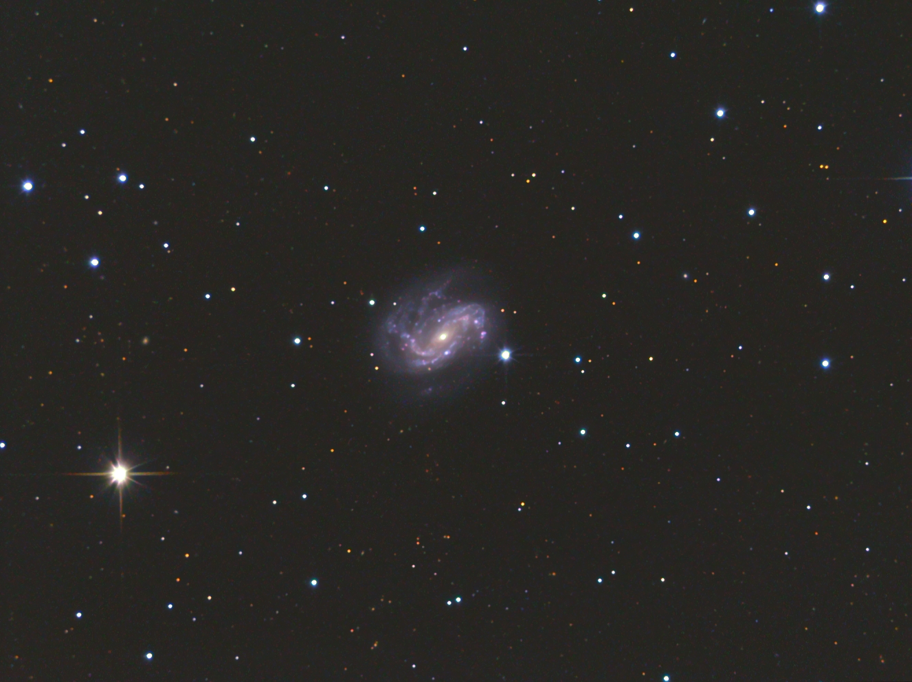 Diese schöne Galaxie wird nicht allzu oft aufgenommen und abgebildet. Als Seyfert-Galaxie (10,0 mag, 6,0 x 5,0 Bogenminuten, Typ SAB(rs)bc nach De Vaucouleurs, Durchmesser 79000 Lichjahre) enthält sie ein extrem massereiches Schwarzes Loch mit 1,8 Milliarden Sonnenmassen.Bereits drei Supernovae wurden in ihr entdeckt (1983, 2003 und 2010). Ihre Entfernung beträgt etwa 54 Millionen Lichtjahre. Entdeckt wurde sie am 6. Februar 1788 von William Herschel. Meine Aufnahme mit dem 8"/ F4.5 (Expos, 5h) stammt bereits aus 2012,und verglichen mit Berlin (10", Expos.15h!)) kommt sie ganz gut mit. Die Himmelshelligkeit über Little Palomar Observatory mit dem SQM beträgt 21,00 +- 0,15 mag (Bortle 4-5, Landhimmel).