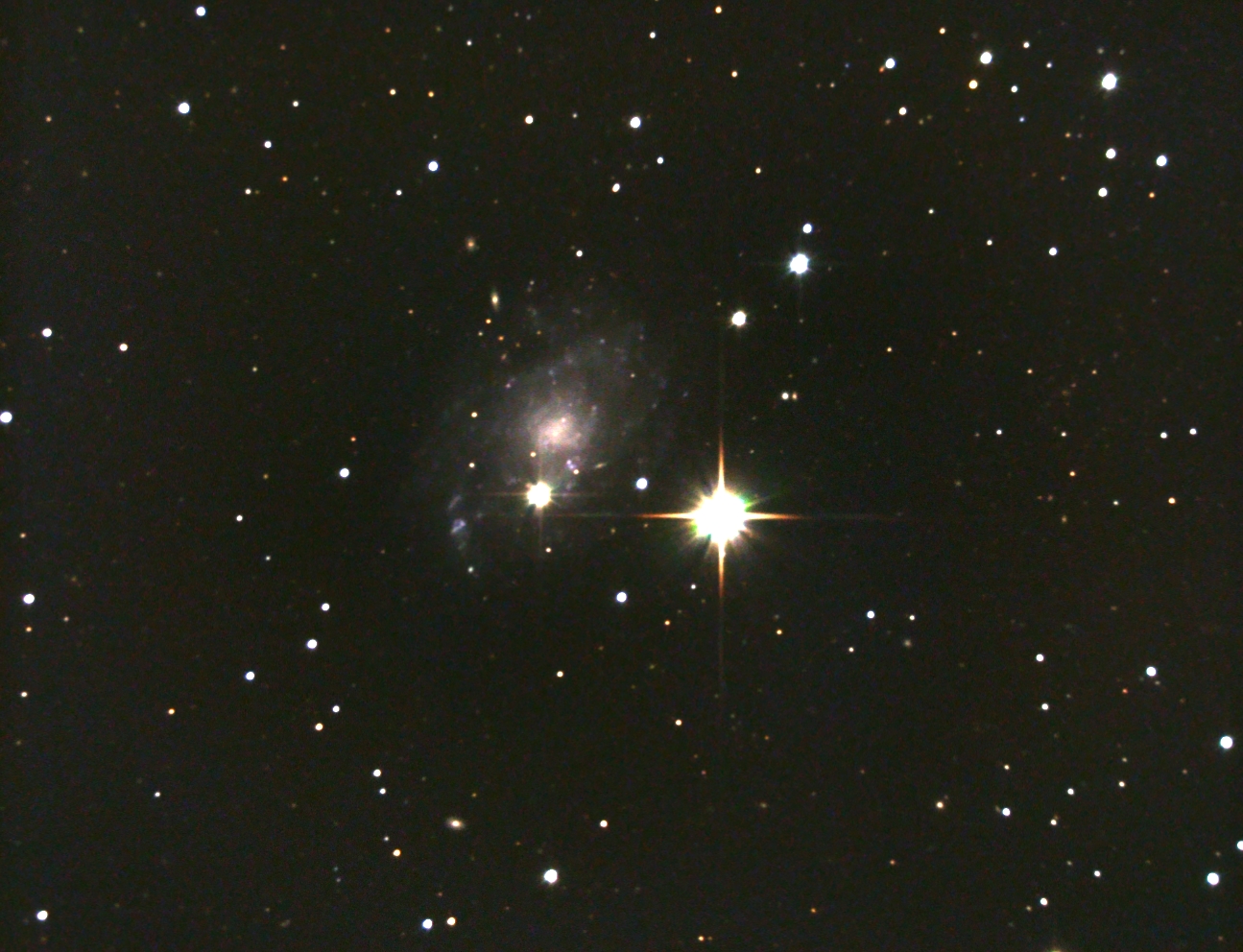 Übersehen wegen der beiden wohlbekannten Galaxien NGC 253 und NGC 247, die sich nur acht Grad östlich von ihr befinden, ist diese schöne und schwierige Galaxie dennoch sehr auffallend. Sie befindet sich neun Grad südwestlich von Beta Ceti (Deneb Kaitos) auf -23 Grad Deklination. Es handelt sich um eine Low-surface-Galaxie (Zwerggalaxie vom magellanschen Typ) mit einem aktiven Galaktischen Kern (Seyfert-Galaxie). Ihre Gesamthelligkeit von 10.7 mag verteilt sich auf eine Fläche von 8,5 x 5,9 Bogenminuten. Der Hubble-Typ ist SBd (SA(s)dm nach De Vaucouleurs) und bei einer Entfernung von 24 Millionen Lichtjahren ist sie nur halb so groß wie unsere Milchstraße, nämlich 55000 Lichtjahre im Durchmesser. Entdeckt wurde sie am 11. November 1835 von John Herschel. Die Nähe der zwei hellen Sterne, SAO166132, 6,9 mag, spec K0 südwestlich und SAO166132, 9,9 mag,spec K0, südlich davon (rötlich) bildet einen schönen Kontrast zur (blauen) Galaxie. Im Umfeld erkennt man einige weit entfernte Hintergrundgalaxien.
