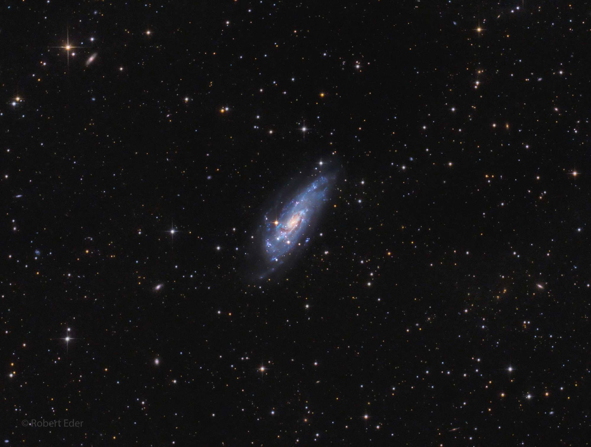 Diese selten fotografierte, schöne Balkenspiralgalaxie befindet im Sternbild Haar der Berenike und ist rund 36 Millionen Lichtjahre entfernt. Es gibt hier viele kleine Hintergrundgalaxien zu entdecken. Für die suboptimalen Bedingungen auf Grund des Saharastaubs bin ich mit dem Ergebnis ganz zufrieden.