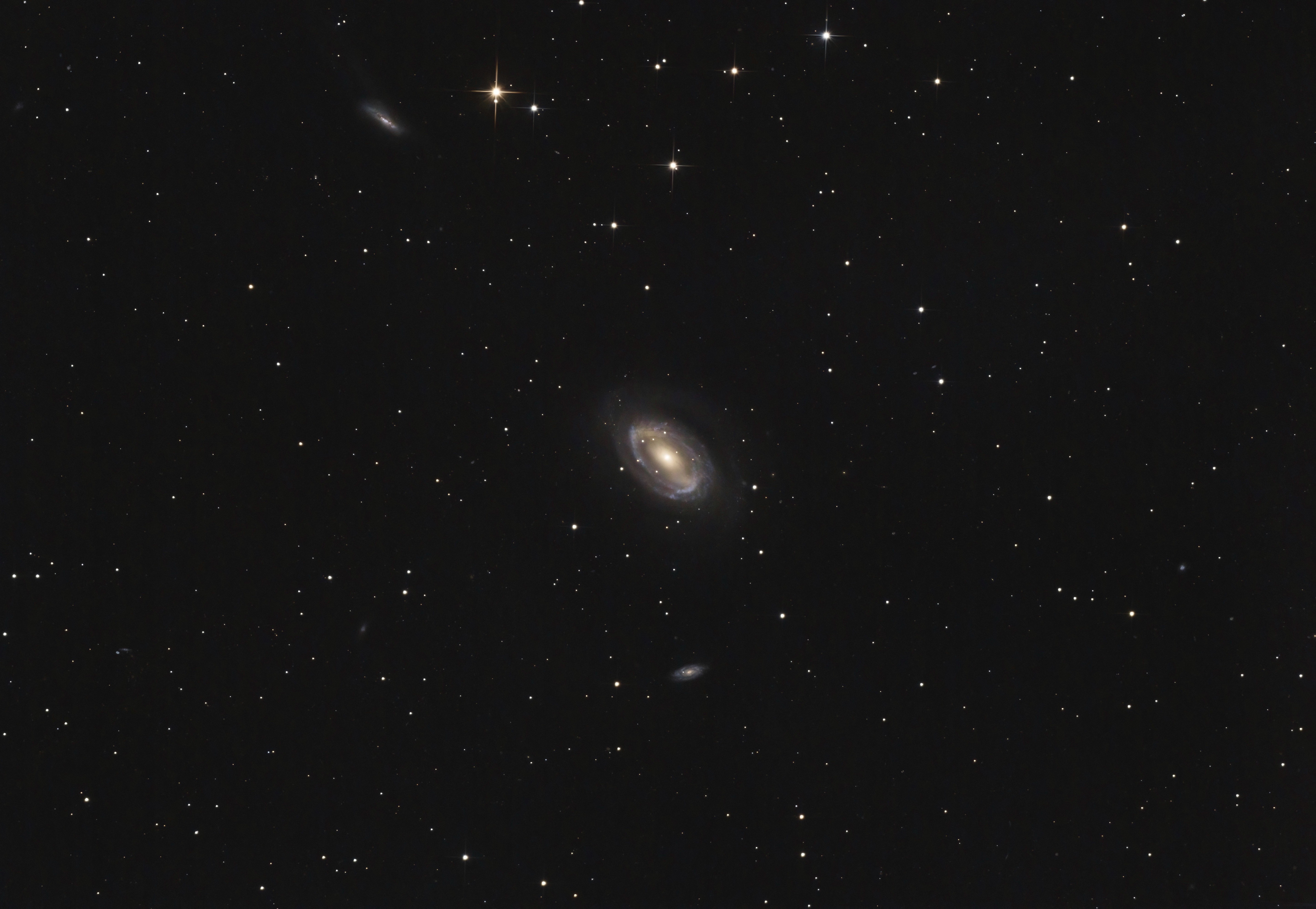NGC 4725 ist eine Balkenspiralgalaxie in einer Entfernung von rund 54 Millionen Lichtjahren. Auch auf dem Bild NGC 4747 oben, die mit NGC4725 interagiert. Unten ist noch NGC 4712 zu sehen, die mit 190 Millionen Lichtjahren aber deutlich weiter weg ist.