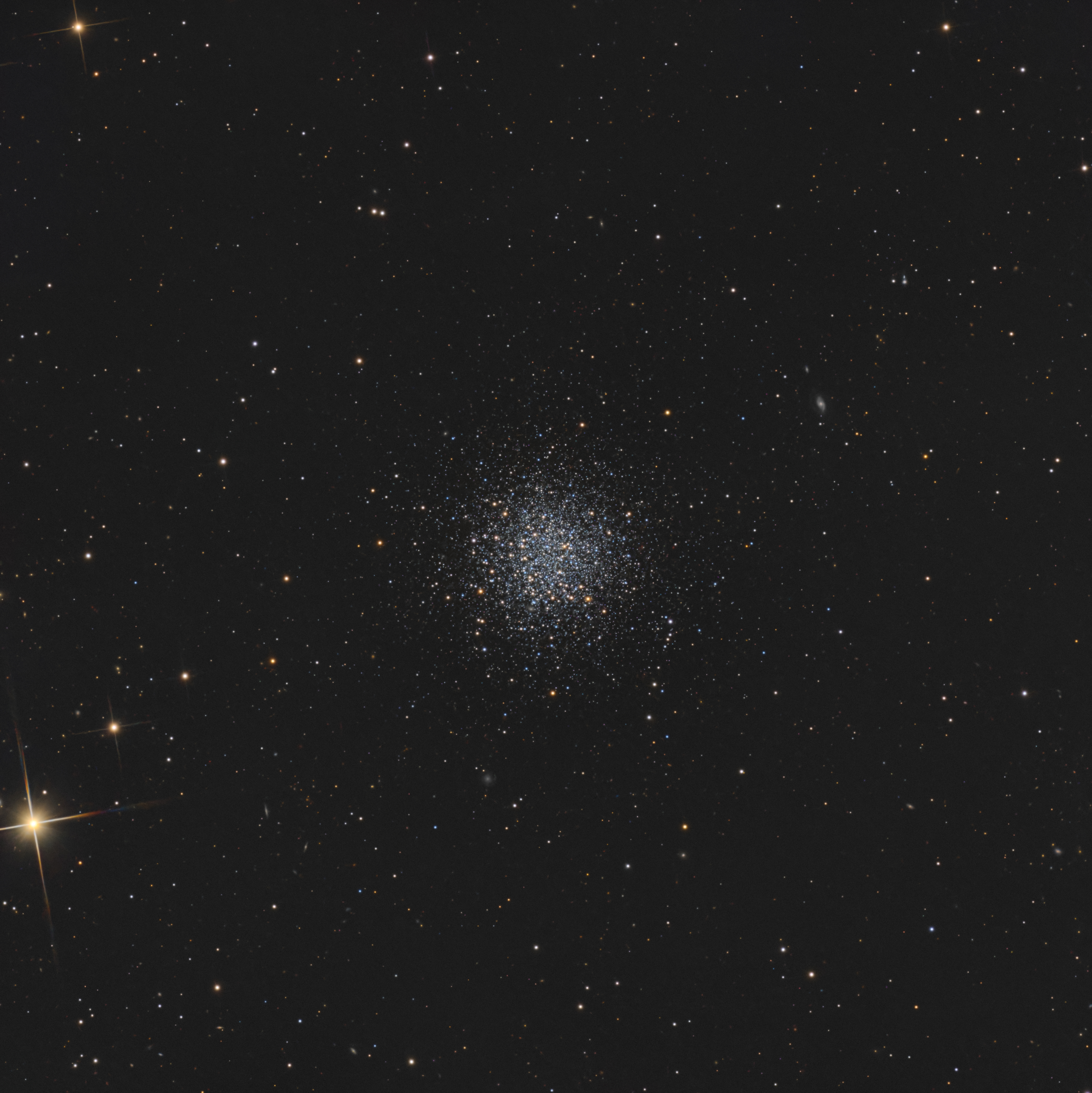NGC 5466 ein Kugelsternhaufen im Sternbild Bärenhüter, nicht so leuchtkräftig und sternenreich wie sein etwas bekannterer Nachbar Messier 3. Er ist einer der Masseärmsten bekannten Kugelsternhaufen und ist rund 55000 Lichtjahre entfernt.