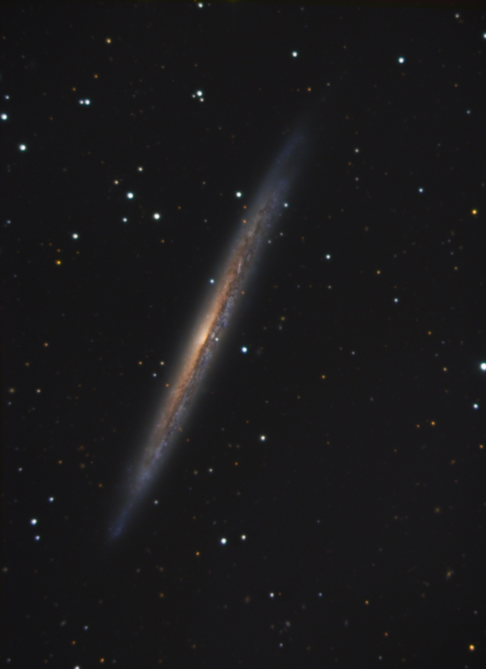 NGC 5907 ist eine Galaxie in Kantenlage mit einer Ausdehnung von 12,8 x 1,4 Bogenminuten, ohne sichtbaren "Bulge". Sie ist somit sehr schlank und vermutlich vom Hubble-Typ Sc. Entsprechend ihrer Entfernung von etwa 50 Millionen Lichtjahren beträgt ihr wahrer Durchmesser mindestens 150000 Lichtjahre. Die Galaxie wurde im Mai 1788 von Wilhelm Herschel entdeckt. Am 18. Juli 2006 und an neun Terminen im Jahr 2012 wurden insgesamt 29,3 Stunden belichtet.
