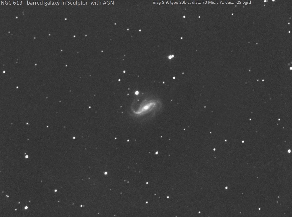 In Ergänzung zum Artikel von M. Fritz und K.-P. Schröder in SUW 10/2022: Vor längerer Zeit konnte ich NGC 613 mit dem 6" /F5-Newton aufnehmen, allerdings nur mit Luminance 80 min, Farbe wird nachgeholt!