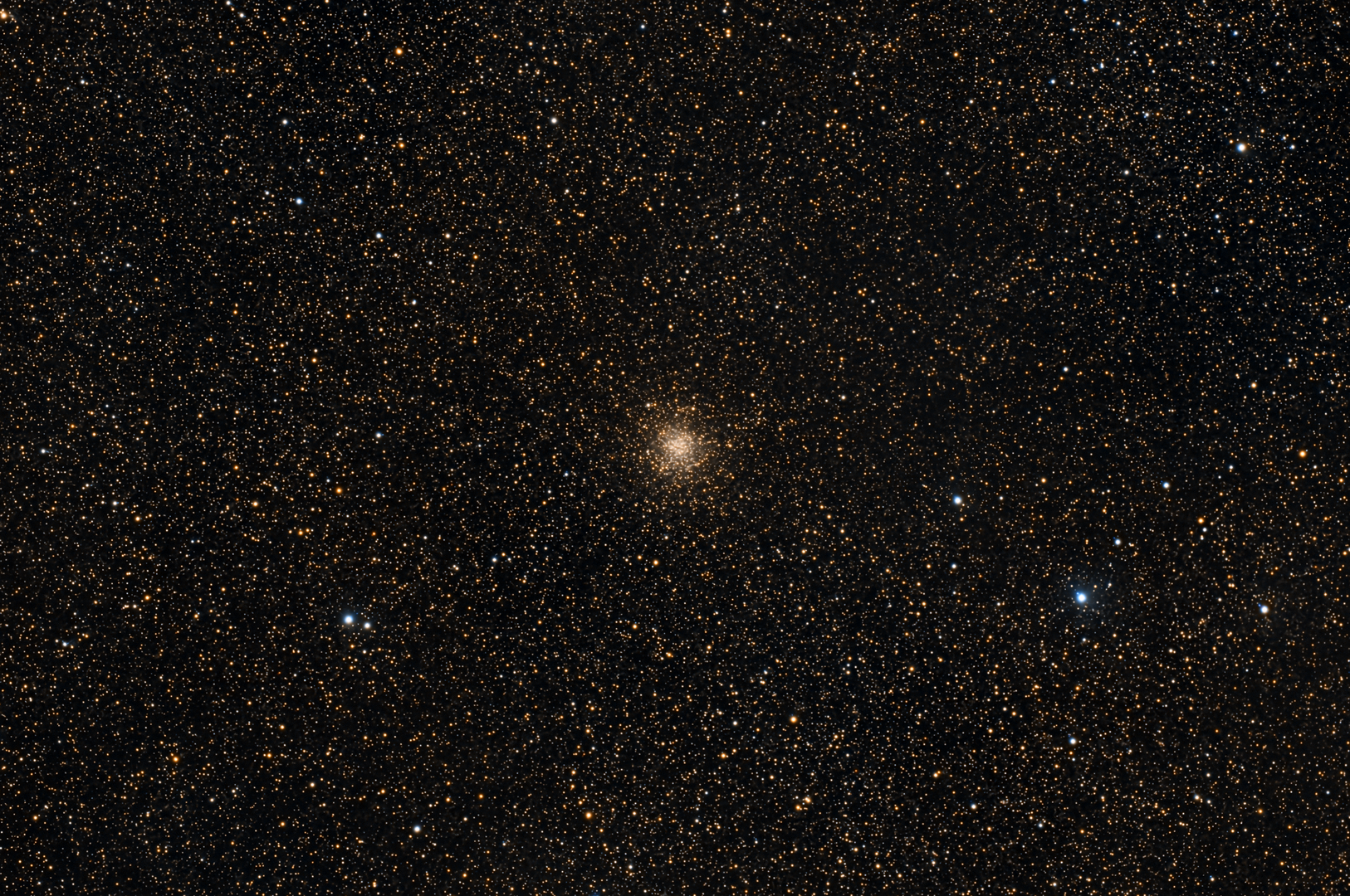 Ich möchte Ihnen hier einen eher selten fotografierten Kugelsternhaufen zeigen, nämlich NGC 6760. NGC 6760 ist ein Kugelsternhaufen im Sternbild Adler (Aquila) in Äquatornähe. Im New General Catalogue (NGC) ist er unter der Bezeichnung NGC 6760 verzeichnet. Dieser Katalog ist eine Liste von Deep-Sky-Objekten, die 1888 von John Louis Emil Dreyer erstellt wurde, um die früheren Arbeiten von John Herschel zu aktualisieren. NGC 6760 ist kein Messier-Objekt und besitzt keine Messier-Nummer. Aufgrund der Position des Sternbilds Adler (Aquila) kann NGC 6760 in der Äquatorregion des Himmels lokalisiert werden. Da sich NGC 6760 in der Äquatorregion befindet, ist er von beiden Erdhalbkugeln aus sichtbar in liegt in einer sternreichen Gegend in der galaktischen Scheibe. allerdings abhängig von der Entfernung zwischen Nord und Süd. Die Radialgeschwindigkeit ist die Geschwindigkeit, mit der sich ein Objekt von der Sonne entfernt bzw. auf sie zubewegt. Für NGC 6760 beträgt die Radialgeschwindigkeit -0,00042 km/s. Ein negativer Wert bedeutet, dass sich das Weltraumobjekt und die Sonne einander annähern. Die Entfernung derzeit beträgt annähernd 24000 Lichtjahre.