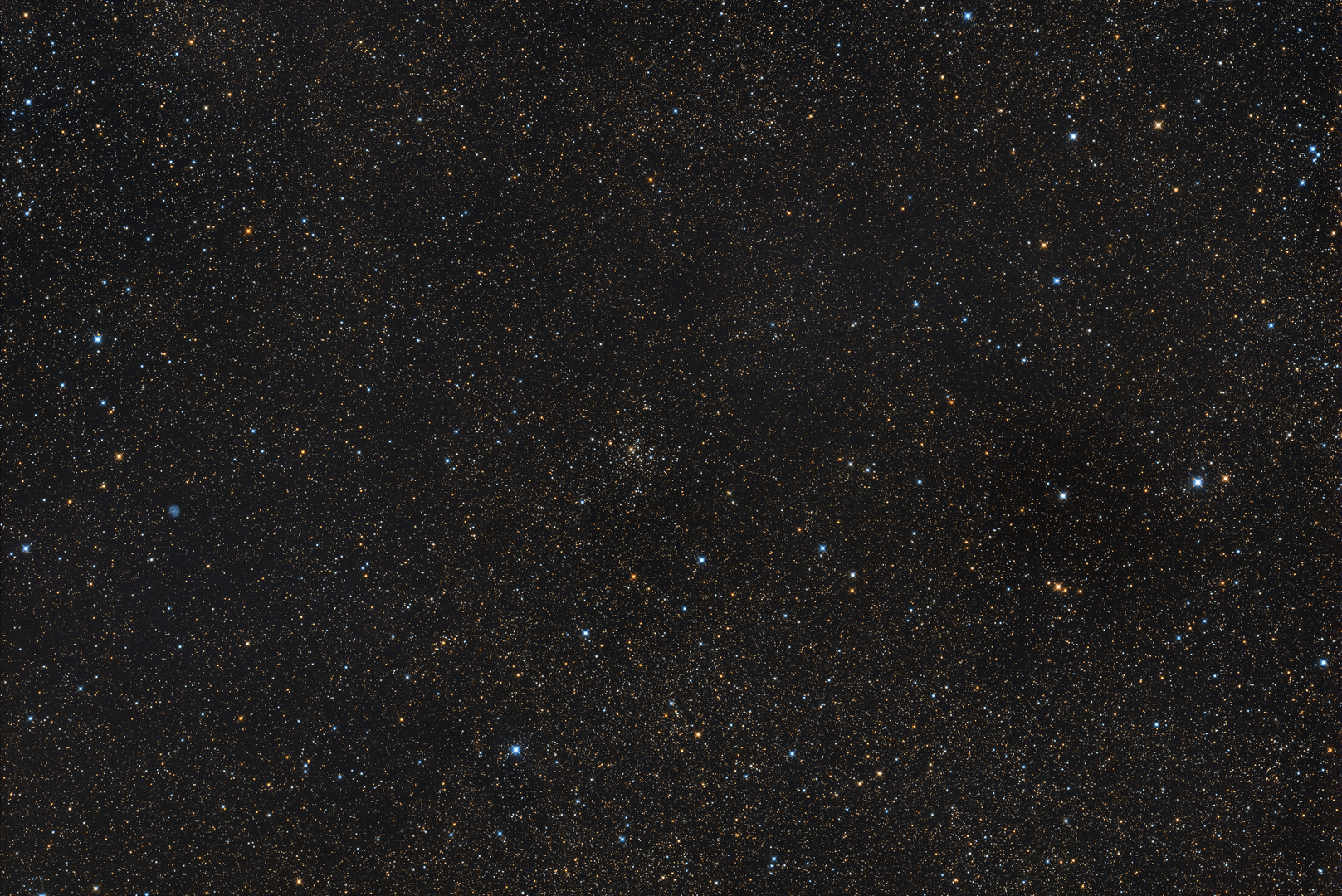 NGC 6834 ist ein offener Sternhaufen, der etwa 7000 Lichtjahre von der Sonne entfernt im Sternbild Schwan liegt. Er hat eine scheinbare Helligkeit von 7,8 mag und ein geschätztes Alter von 65 Millionen Jahren. Links auf diesem Bild ist auch der Planetarische Nebel NGC 6842 zu sehen. Er weist eine unregelmäßige Scheibe mit Spuren einer Ringstruktur auf.