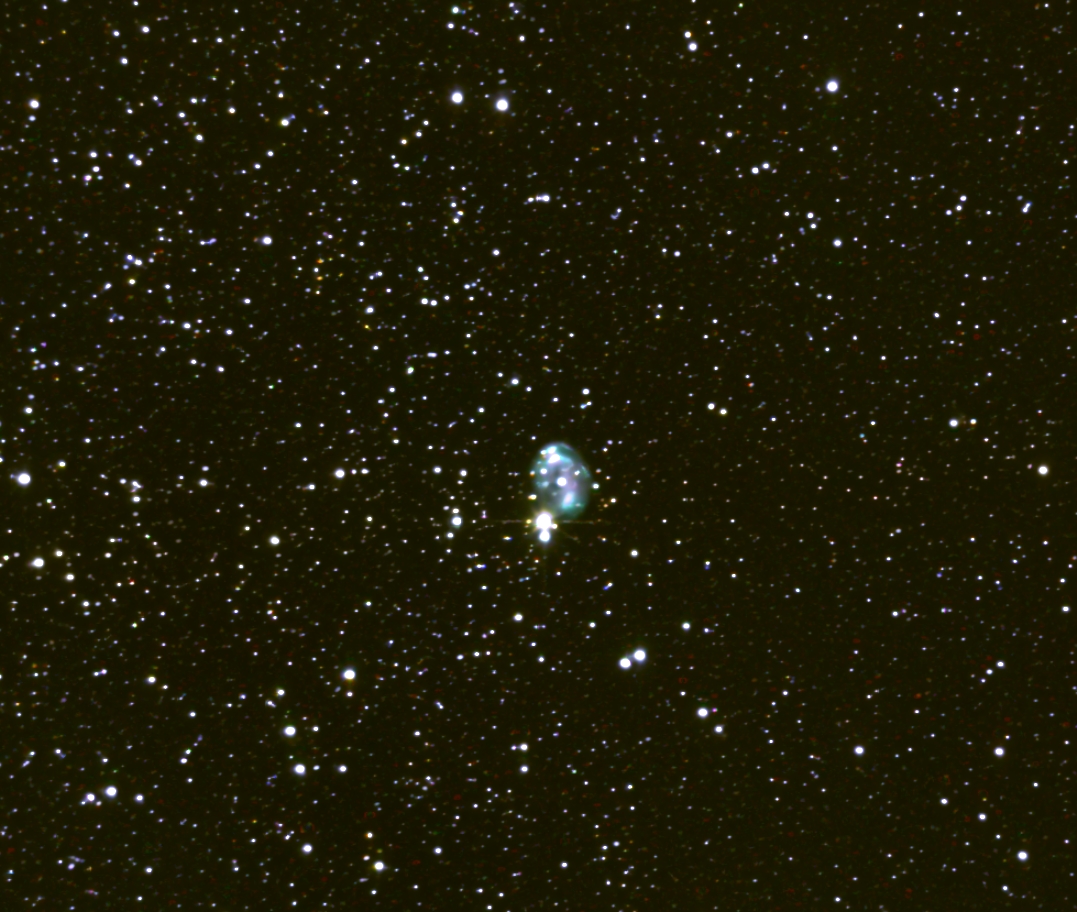 Die Brennweite meines 8"/F4.5-Newton ist zu klein für die meisten Planetarischen Nebel. Trotzdem versuche ich das Bestmögliche aus ihm herauszuholen und habe mir die Grenze mit 60 Bogensekunden Durchmesser gesetzt. NGC 7008, der sogenannte Fötus-Nebel, gehört mit 1,4 Bogenminuten dazu. Mit 10,7 mag hat er in der angegebenen Entfernung von 2800 Lichtjahren einen Durchmesser von einem Lichtjahr. Entdeckt wurde er am14. Oktober 1787 von W. Herschel. Im Katalog der 400 Herschelobjekte hat er die Nummer 192.