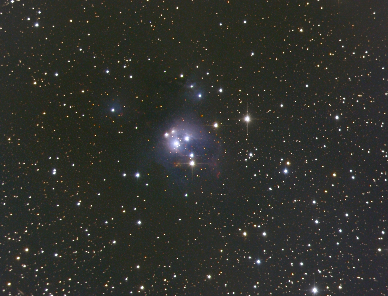 NGC 7129/IC 5134 ist ein kleiner Reflexionsnebel mit HII-Anteilen im Kepheus, 4,5 Grad NE von Alderamin. Er ist rund 3000 Lichtjahre entfernt und wird durch heiße blaue Sterne (spec. O3 ) zum Leuchten angeregt.