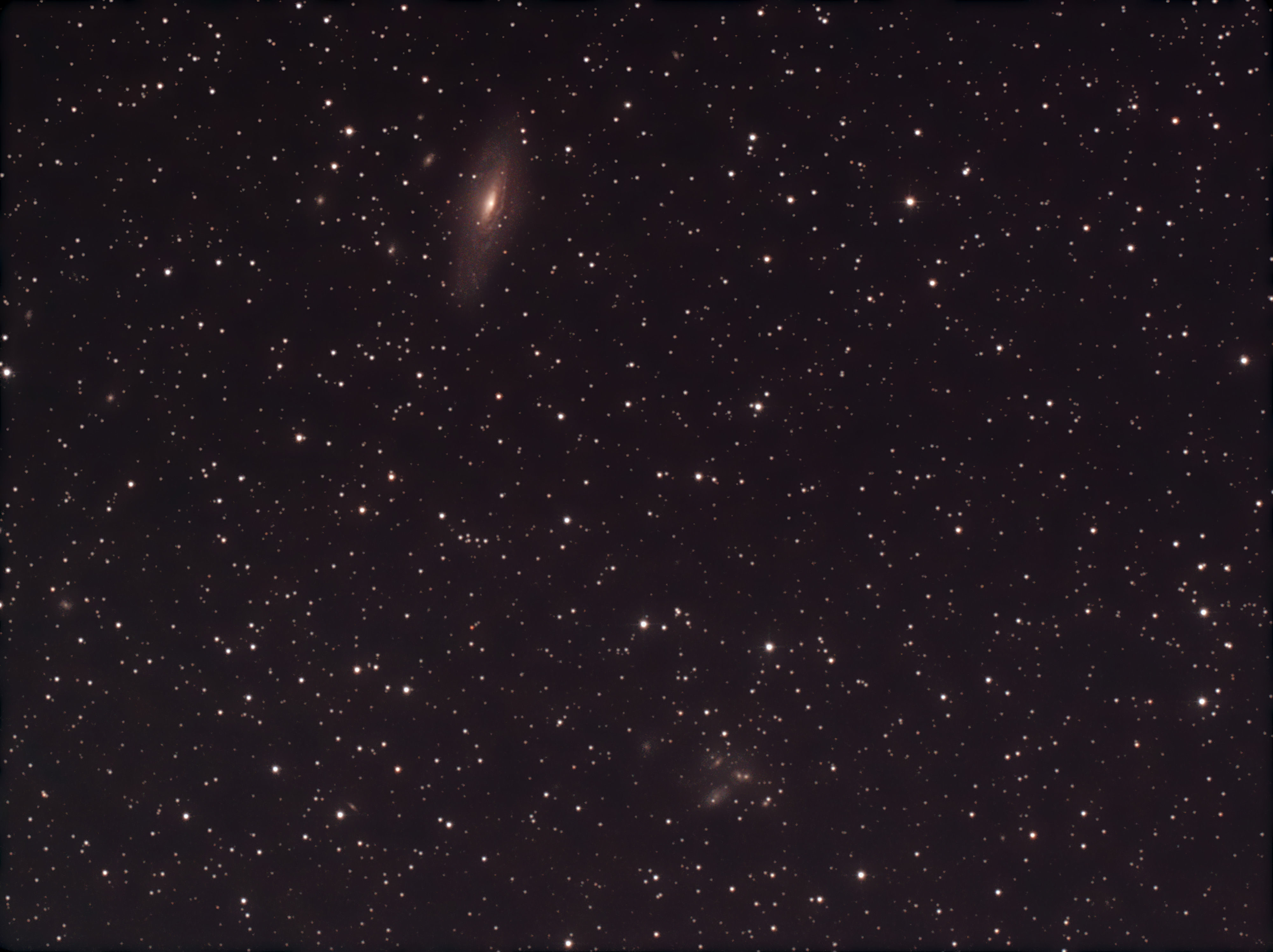 Da die Nacht vom 08.10. auf den 09.10.2017 sich als durchgehend klar erwies packte mich unweigerlich die Neugier darauf, wie sich die schöne Spiralgalaxie NGC 7331 samt ihrem Umfeld in meinem kleinen Newton-Reflektor 130/650 mm PDS von Skywatcher wohl machen würde. So fertigte ich noch kurzerhand eine Belichtungsreihe dieses interessanten Umfeldes trotz Mondstörung an, sobald meine obere Balkonkante das Aufnahmefeld "freigab". Im Rahmen der anschließenden Bildbearbeitung machte ich dann u. a. Gebrauch von der Dreifach-Drizzle-Funktion in Deep Sky Stacker, eine gute Option, um noch ein wenig mehr an Auflösung mit kleinen Optiken zu generieren …