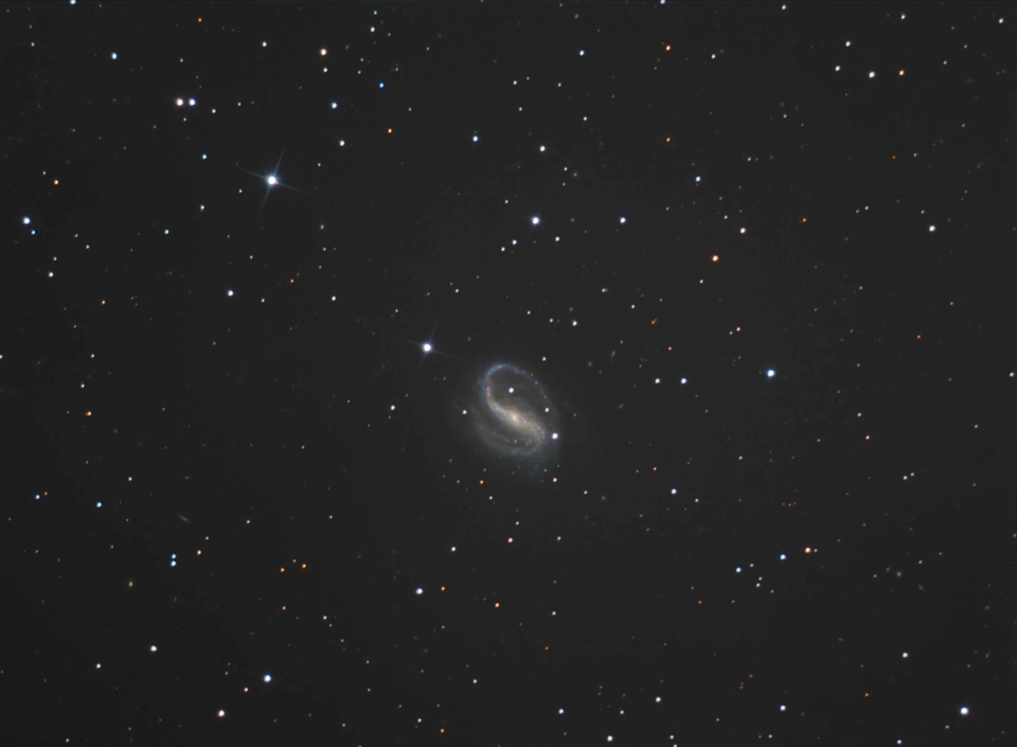 Zwei Nächte hintereinander belichtete ich diese schöne Balkenspirale SBb-C. Aufnahmeteleskop war mein Eigenbau-Newton 306 x 2060 mm. Nachführkontrolle Off-Axis mit der ST4.