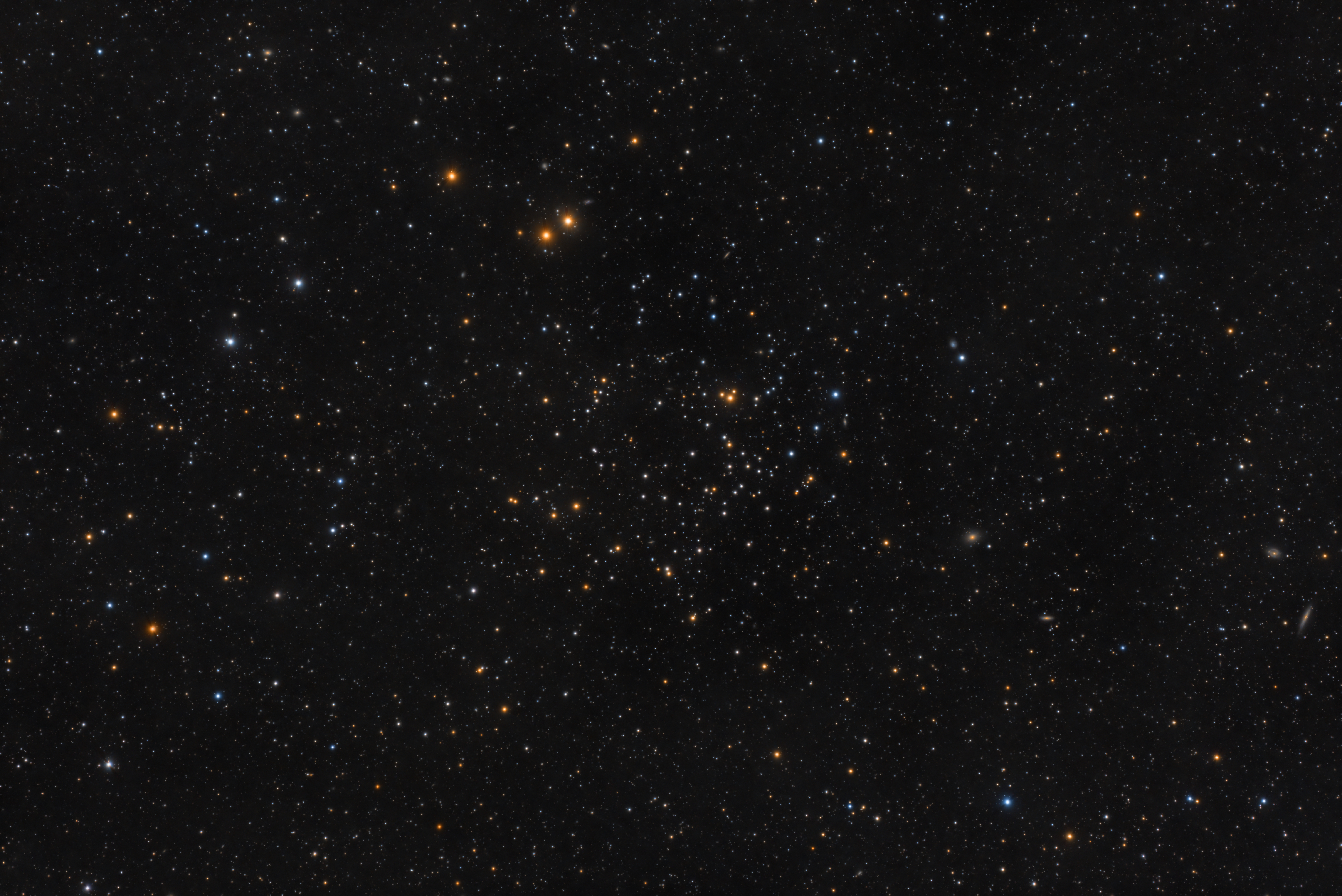 Hallo Sternfreunde, die Andromeda-Galaxie ist sicherlich die bekannteste Schönheit im gleichnamigen Sternbild, aber ... NGC 752 ist ein nicht oft fotografierter offener Sternhaufen im Sternbild Andromeda. Auf den ersten Blick vielleicht nicht spektakulär. Beim Verweilen und genauen Hinsehen umso beeindruckender. Eine große Anzahl von Hintergrundgalaxien befindet sich im gesamten Feld. Ich bin immer wieder beeindruckt von solch schönen Sternhaufen. Nun hoffe ich, dass ihr euch ein paar Minuten Zeit nehmt, um die vielen Galaxien auf dem Bild zu finden.