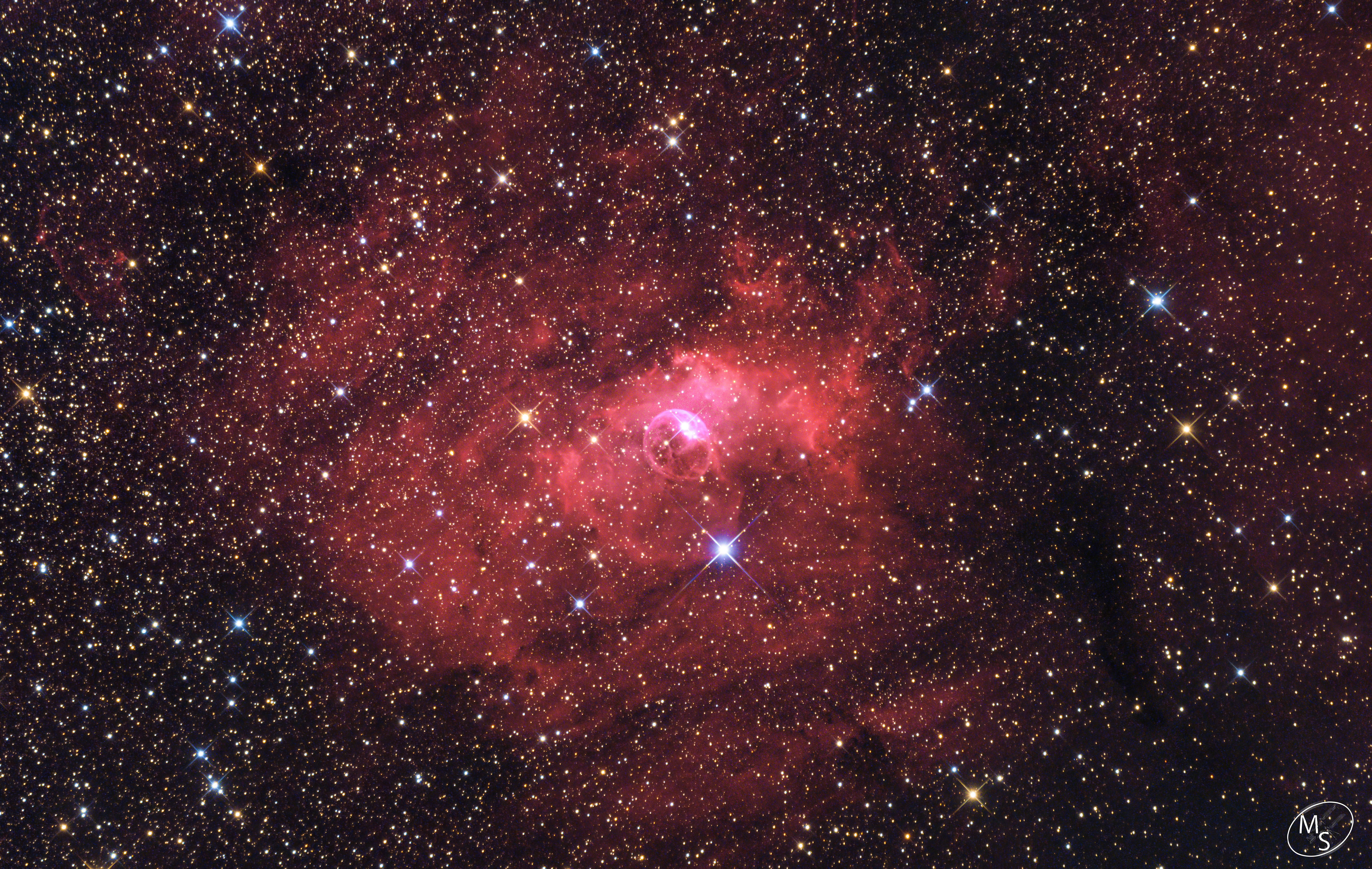 Nach Wochen voller Wolken konnte der 7100 Lichtjahre entfernte Blasennebel auch in Berlin wieder länger beobachtet werden. In drei verhältnismäßig klaren Nächten ist diese Aufnhame entstanden.