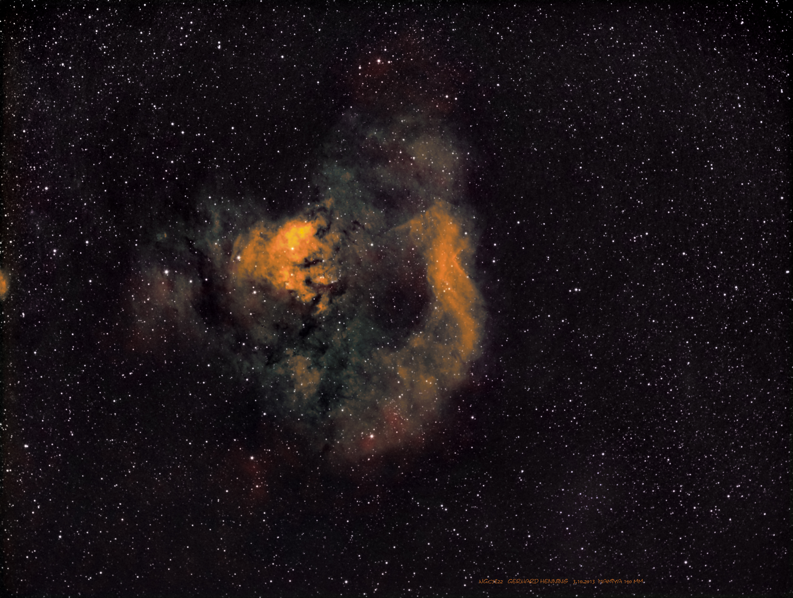 Im Sternbild Kepheus ist NGC 7822, ein Wasserstoffemissionsnebel zu finden, ein großes Sternentstehungsgebiet.