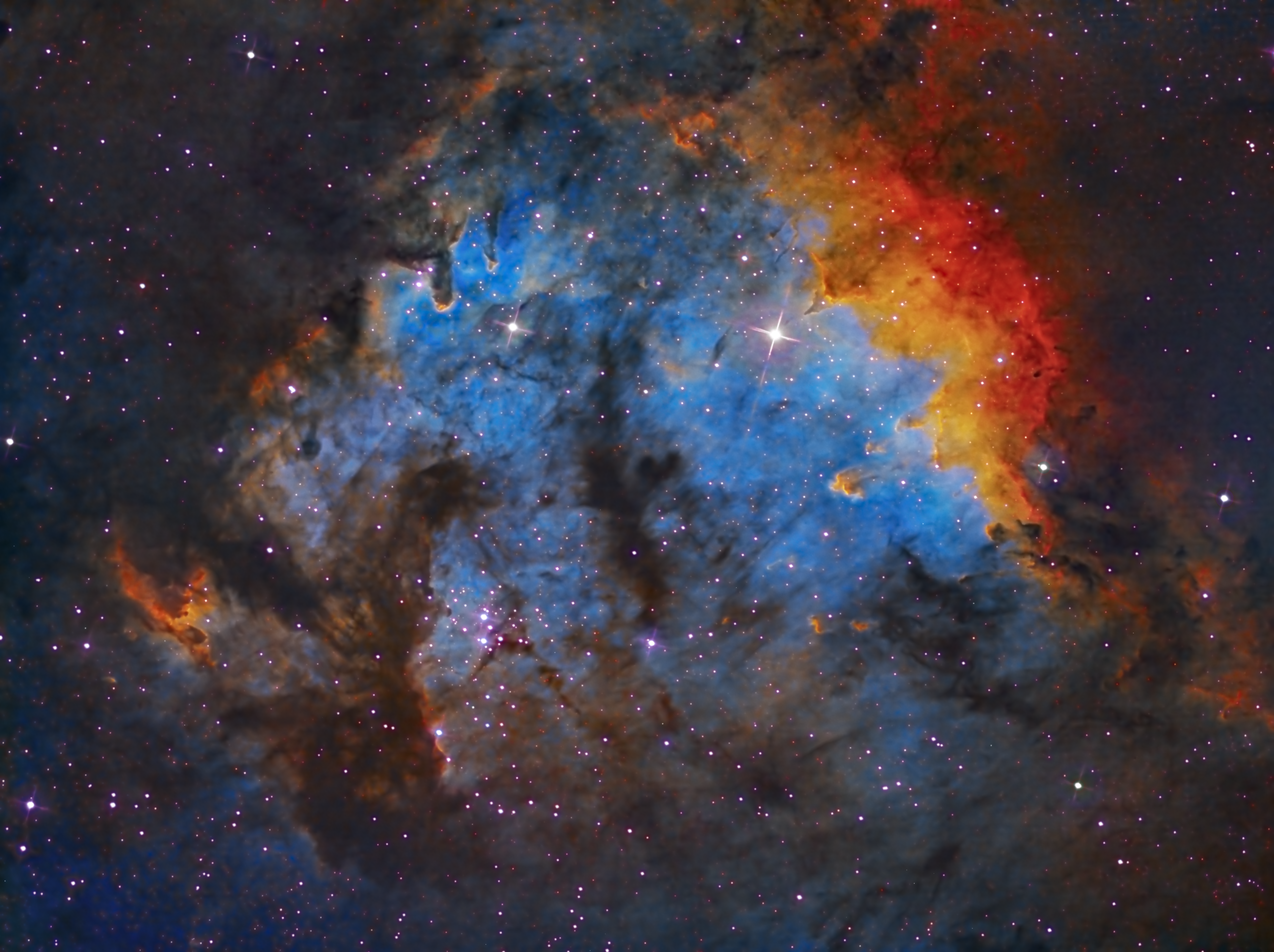 | Belichtungszeit | H-Alpha: 127 x 300 s, SII: 130 x 300 s, OIII: 80 x 300 s |