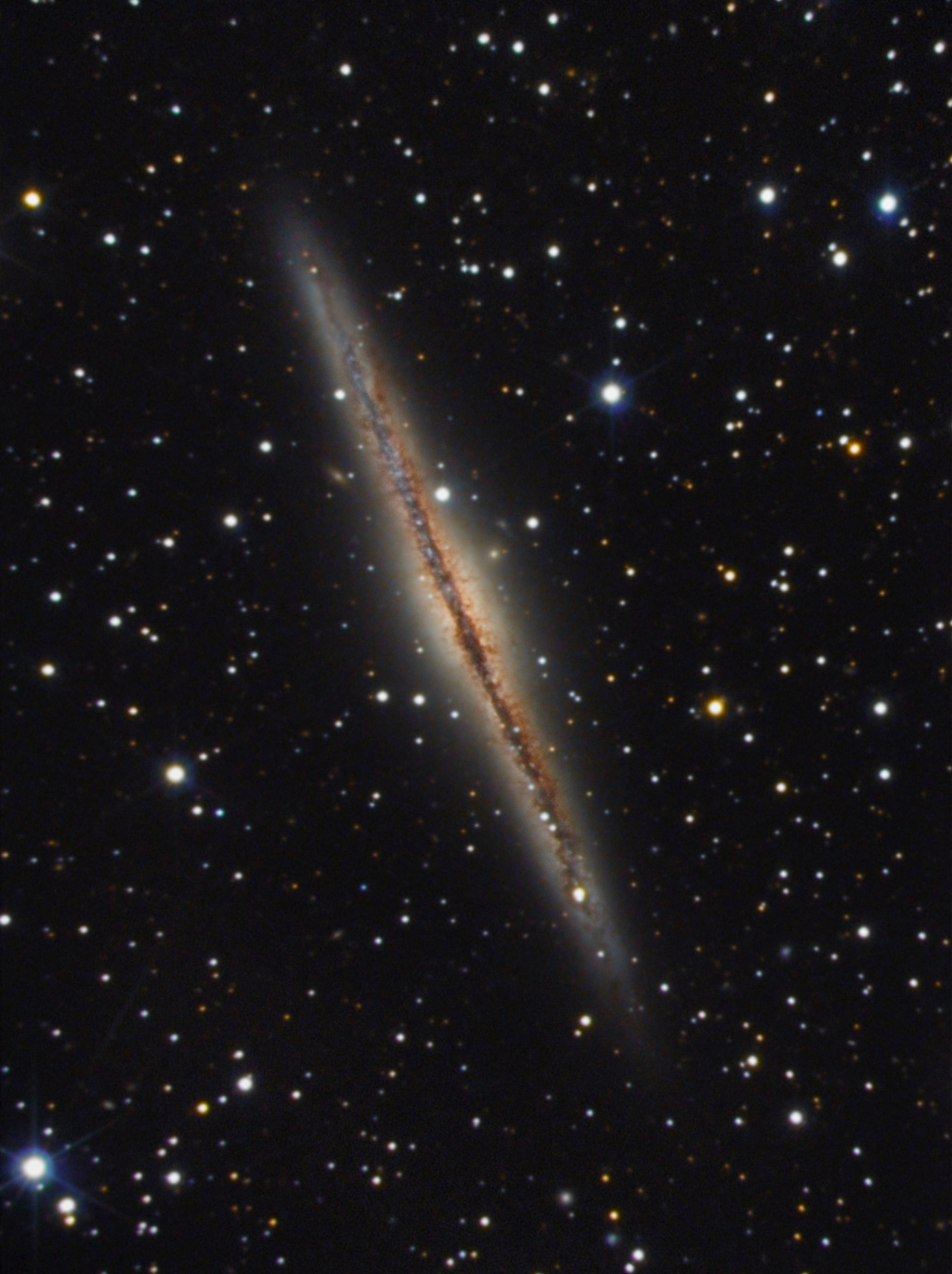 NGC 891 ist eine Spiralgalaxie im Sternbild Andromeda. Sie ist rund 30 Millionen Lichtjahre von uns entfernt und gehört zur NGC 1023-Gruppe. Mit einem Durchmesser von 150000 Lichtjahren ist sie in dieser Gruppe die dominierende Galaxie und gleichzeitig eine der größten bekannten Spiralgalaxien. Entdeckt wurde sie 1784 von Wilhelm Herschel.