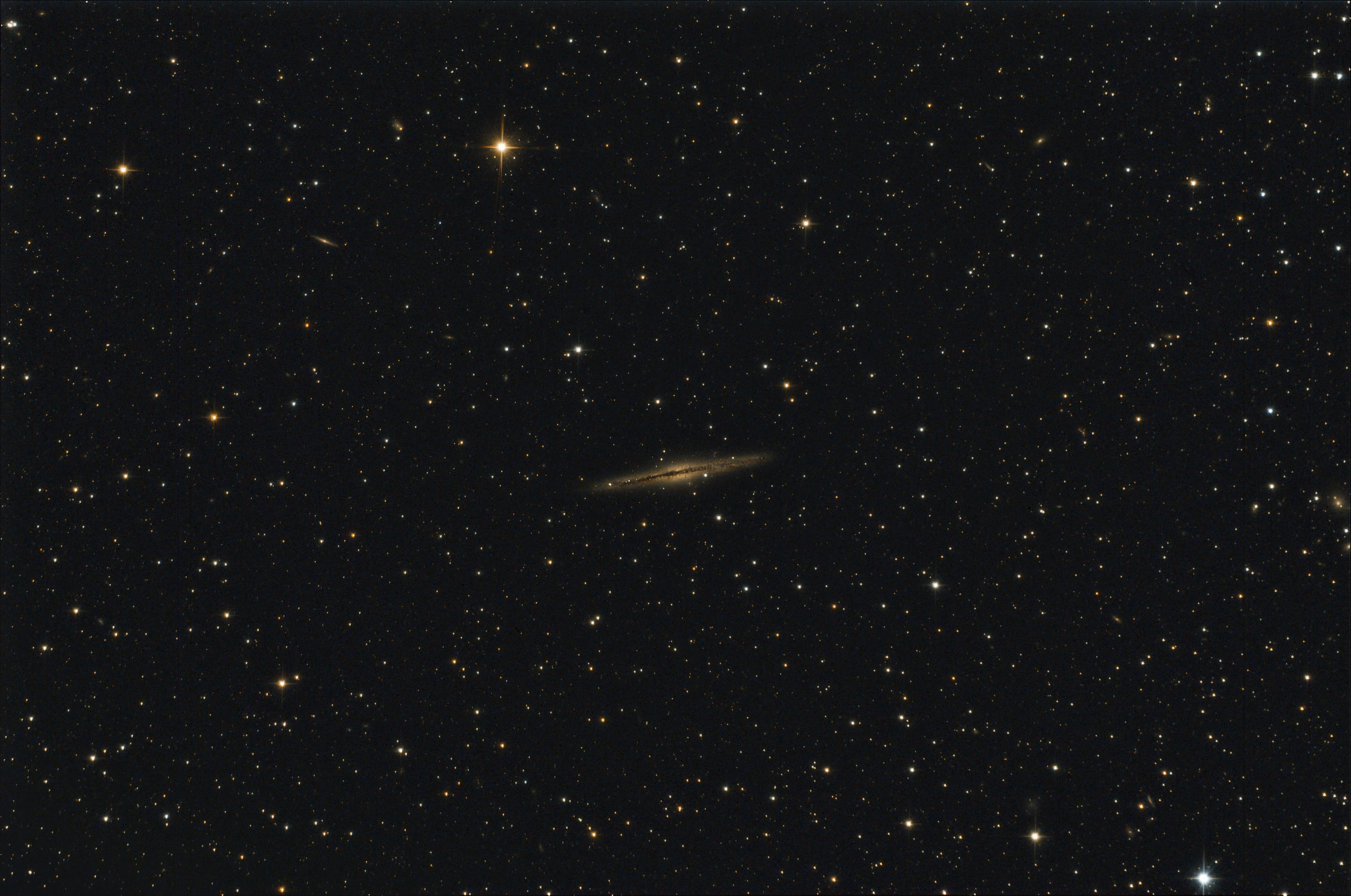 Nachdem ich an diesem Abend mehrfach Probleme mit dem Autoguiding und der Sternabbildung hatte, wollte ich nur ein paar Testschüsse machen, um meine Änderungen zu testen. Da bei den Testaufnahmen alles perfekt lief, habe ich gleich noch 3 h auf NGC 891 gehalten.