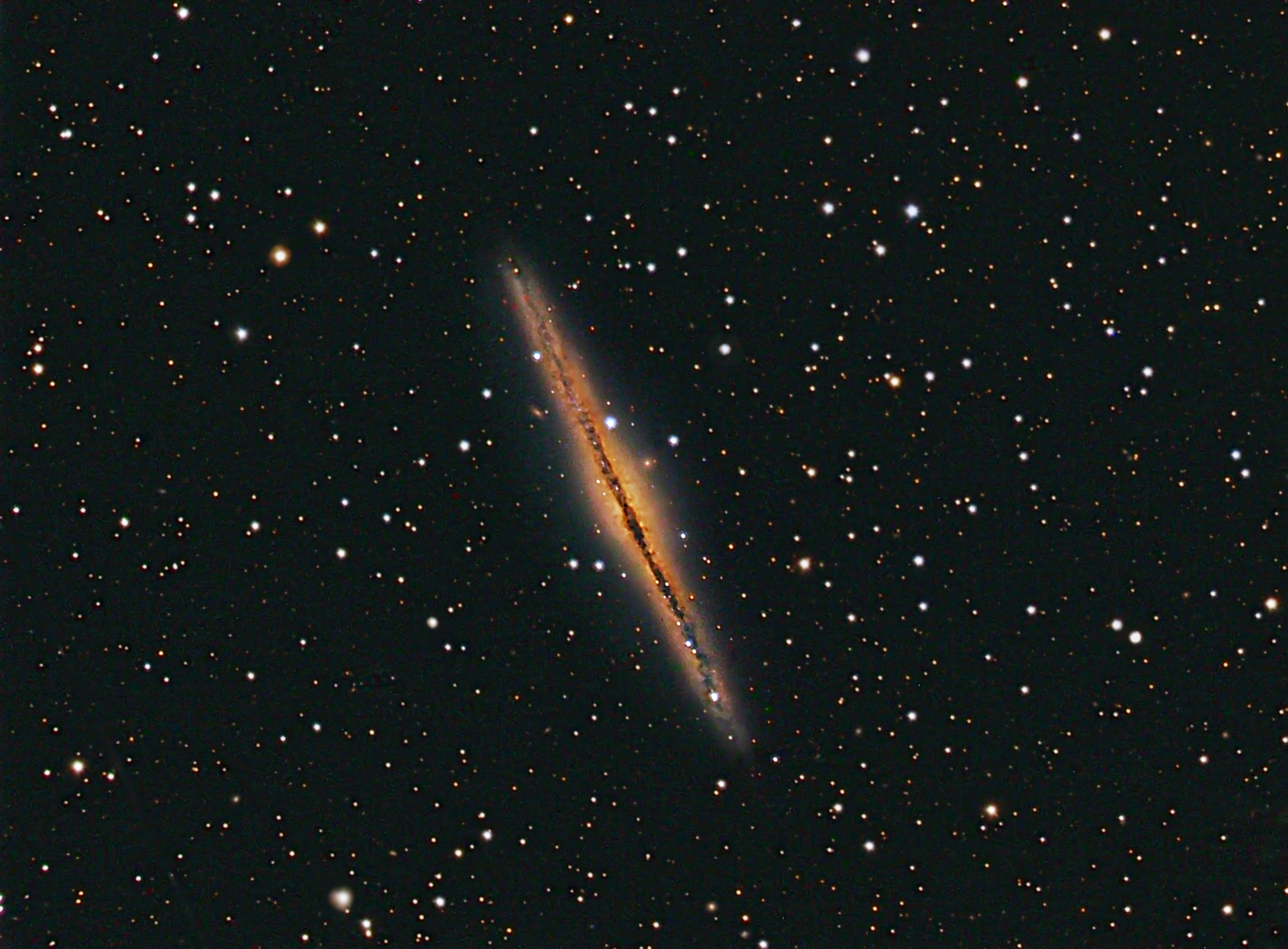 NGC891 ist eine Spiralgalaxie im Sternbild Andromeda. Am 5. Dezember 2016 klarte der Himmel bei uns in Norddeutschalnd auf, so dass ich sie für meine Galaxiensammlung einfangen konnte.