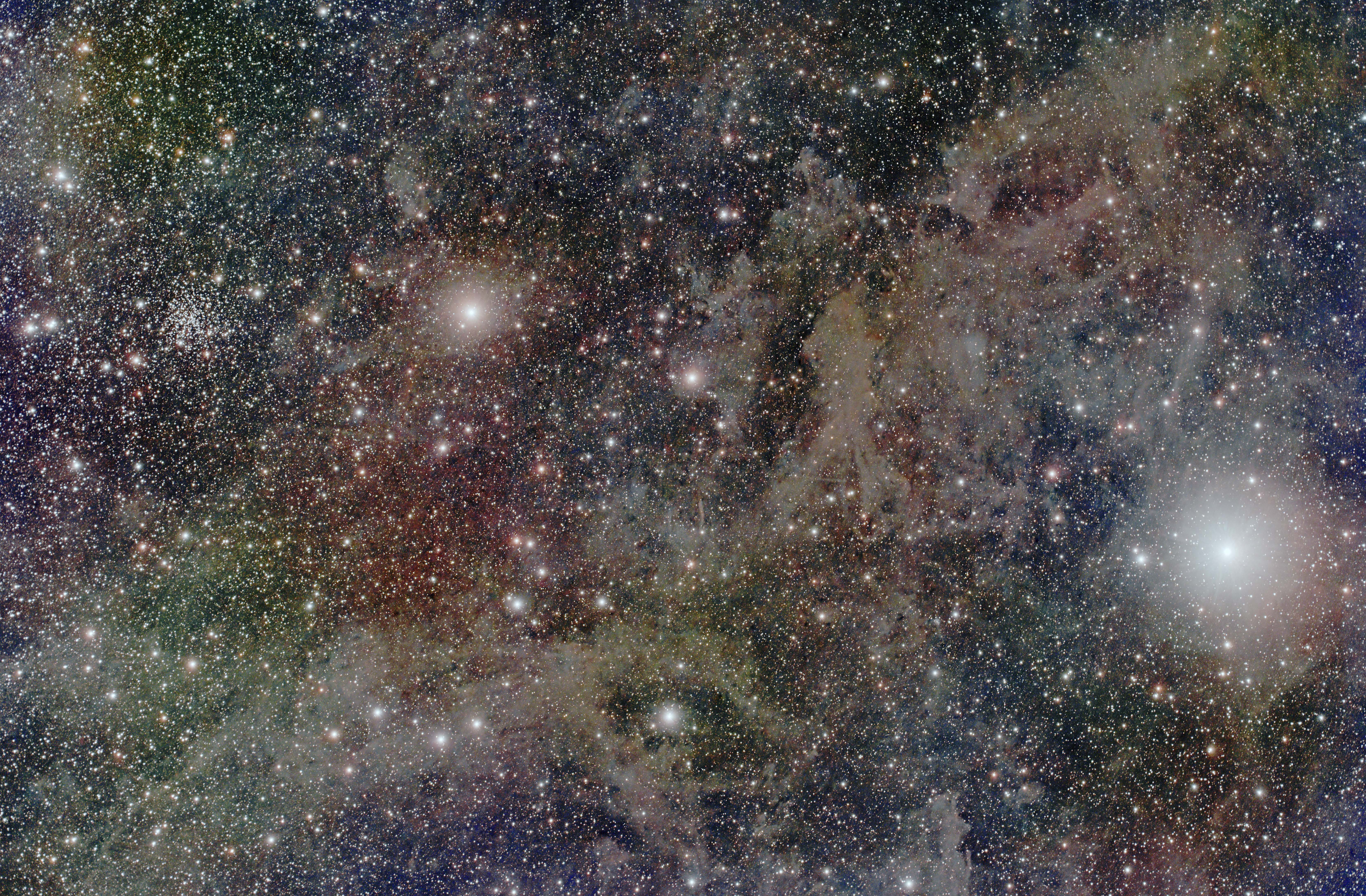 Der Polarstern: jeder kennt ihn, und viele nutzen ihn zum Einnorden von Montierungen. Und sonst, langweilig?... Am 17. Februar war klarer Himmel - mittlerweile eine Besonderheit in unserer Region in dieser Jahreszeit. Da in den letzten Jahren zunehmend nicht nur attraktive H-alpha-Regionen, sondern auch die Himmelsgebiete mit Reflexionsnebeln und galaktischem Staub im Fokus der Fotografen liegen, habe ich orientierend versucht, was aus der - was Lichtverschmutzung angeht - nicht ganz einfachen Rheinebene machbar ist. Ein Test der Polarregion mit 10 x 6 Minuten sollte das zeigen. Als attraktive Zugabe war es möglich, den alten, nördlichsten Sternhaufen - NGC 188 - mit zu erfassen. Das Ergebnis finde ich durchaus beeindruckend. Auf meiner ToDo-Liste steht jetzt ein Programm mit längerer Gesamtbelichtungszeit, mind. ca. 4 h.. Zu bemerken ist noch, dass die sonst zuverlässig arbeitende Guiding-Steuerung MGEN3 aufgrund der hohen Deklination ausgestiegen ist. Die Einzelaufnahmen waren trotzdem alle verwertbar.