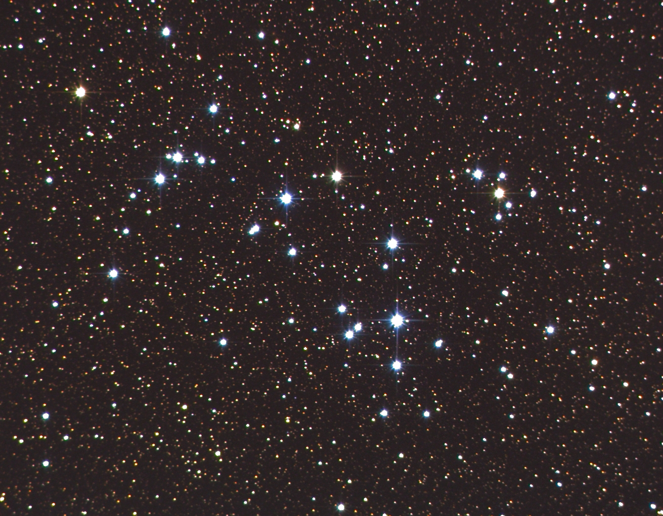 Auf halbem Wege zwischen dem Sternbild Schlangenträger und Adler sieht man, am Rande einer Sternwolke, in dunklen Nächten einen auffälligen Fleck. Dies ist der offene Sternhaufen NGC 6633 (4,7 mag) dessen junge blaue Sterne uns aus 1000 Lichtjahren Entfernung grüssen. Er hat etwa 30 Haufenmitglieder, die etwa 600 Millionen Jahre alt sind. Entdeckt wurde der Sternhaufen 1745 von Jean-Philippe de Cheseaux.