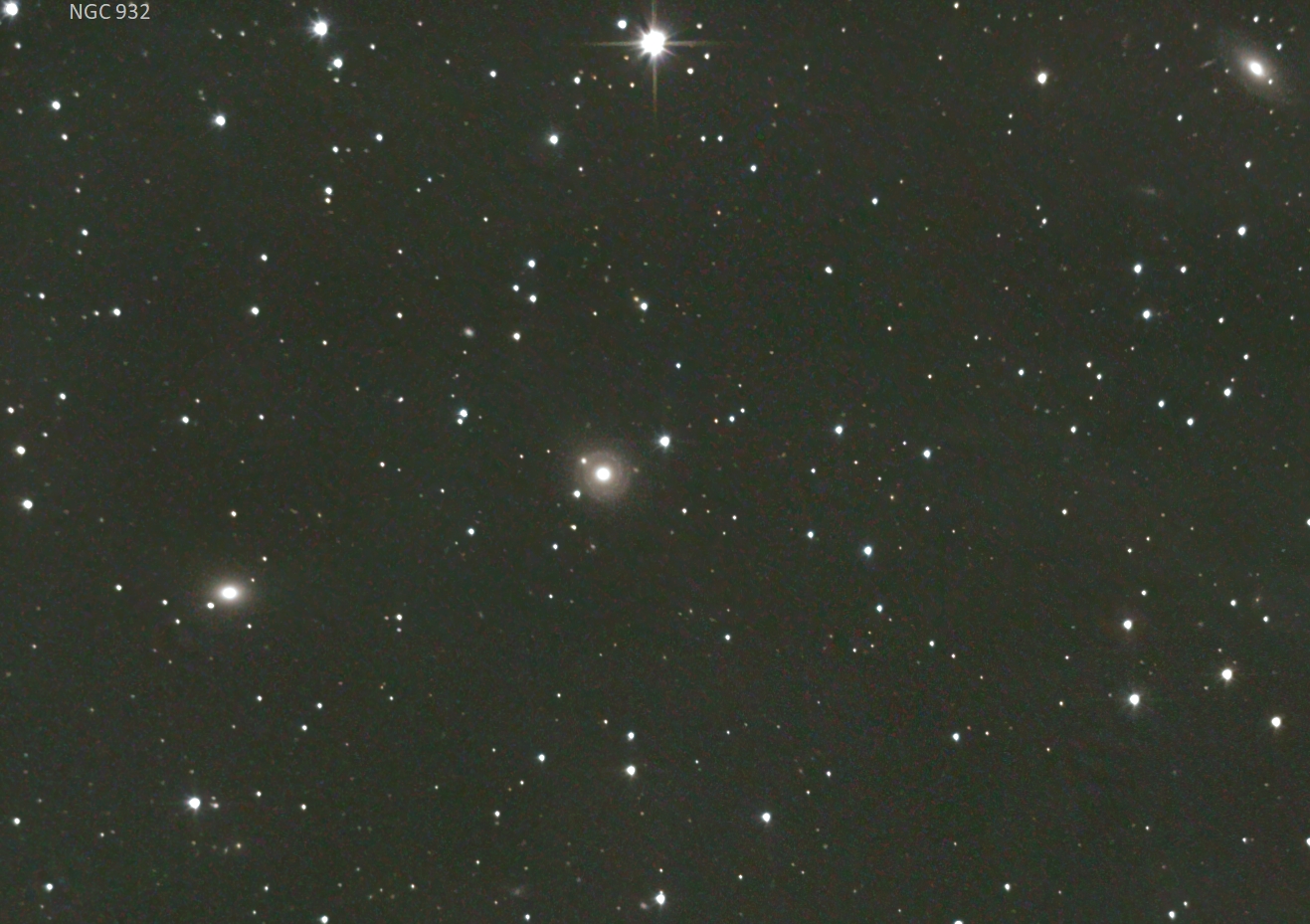 Diese Galaxie fehlte mir gerade noch in meiner langen Liste ungewöhnlicher Galaxien. NGC 932 ist eine kleine, fast face-on (Typ Sa)-Spirale und liegt 6 Grad südöstlich von Hamal (AlAri). Sie ist nur 1,9 x 1,6 Bogenminuten klein und hat auch nur 12,5 mag Helligkeit. Linear ist sie aber gleich groß wie unsere Galaxis und liegt in 180 Milllionen Lichtjahren Entfernung. Im Jahr 2020 wurde in ihr eine Typ-Ia-Supernova entdeckt. Das ist aber nicht das ungewöhnliche Objekt, das sich etwa 50 Bogensekunden nordöstlich des Kerns befindet. Es wird beschrieben als "Kompakte Kondensation, mag.14.5" und hat die NGC-Nummer 930 erhalten. Über dessen Natur konnte ich nirgendwo irgendeine Information finden. Wer kann das Rätsel lösen?