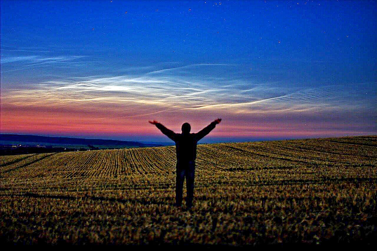 Leuchtende Nachtwolken (NLCs) sind in Mitteldeutschland normalerweise am Horizont zu finden. Am Abend des 17. Juni 2019 kurz nach 22:30 Uhr MESZ sah ich unglaubliche NLCs bis in den Zenit! Hielt es für nicht möglich, aber Mitbeobachter im Netz bestätigen das. Unglaublich! Die NLCs zogen dann weiter in ihre normale Position im Norden, wo dieses Bild entstand.