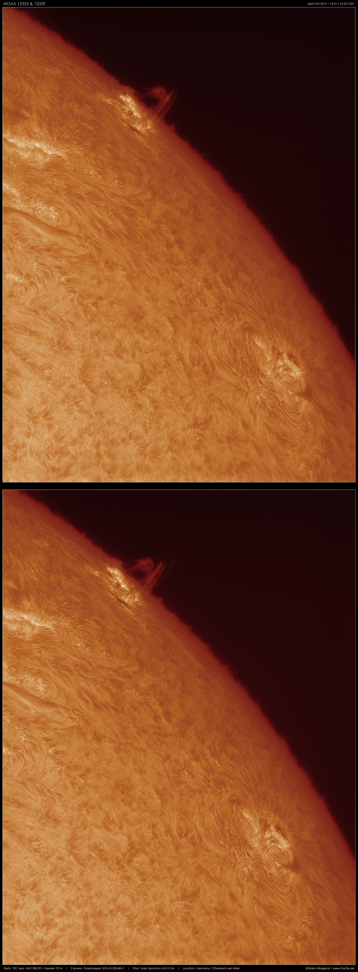 Leserbilder Astronomie: NOAA 12322 und 12329 am Sonnenrand