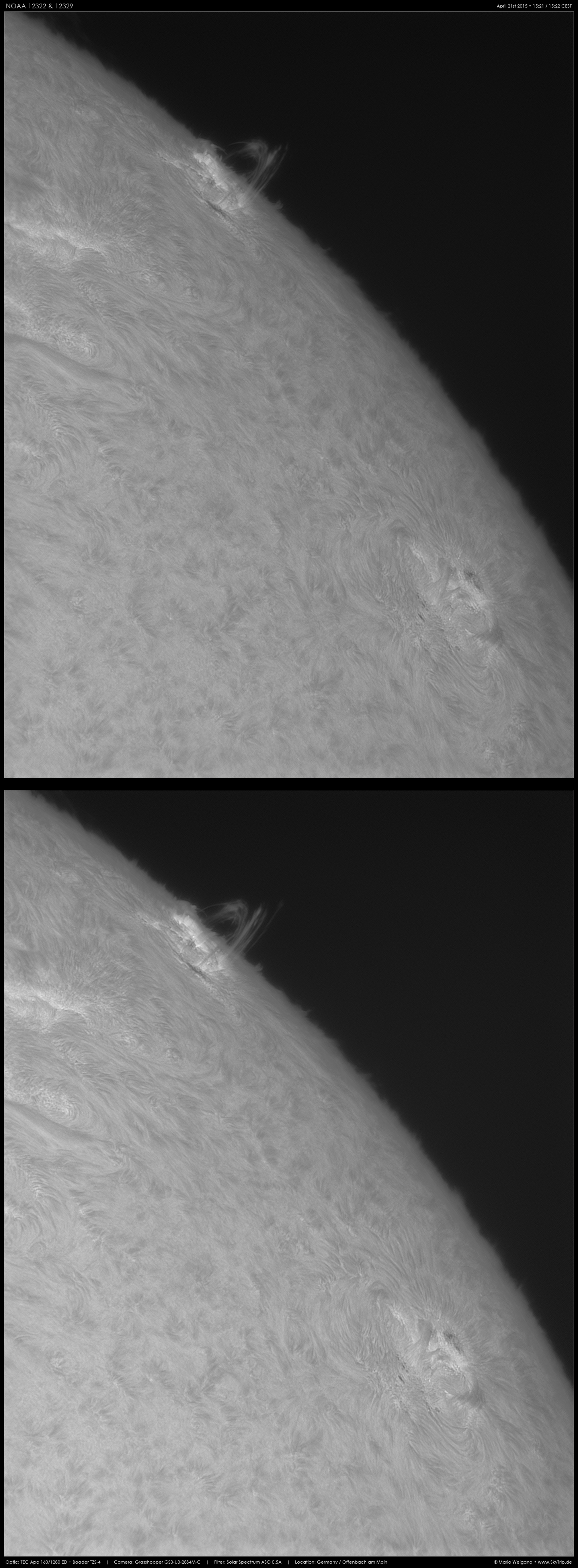 Leserbilder Astronomie: NOAA 12322 und 12329 am Sonnenrand