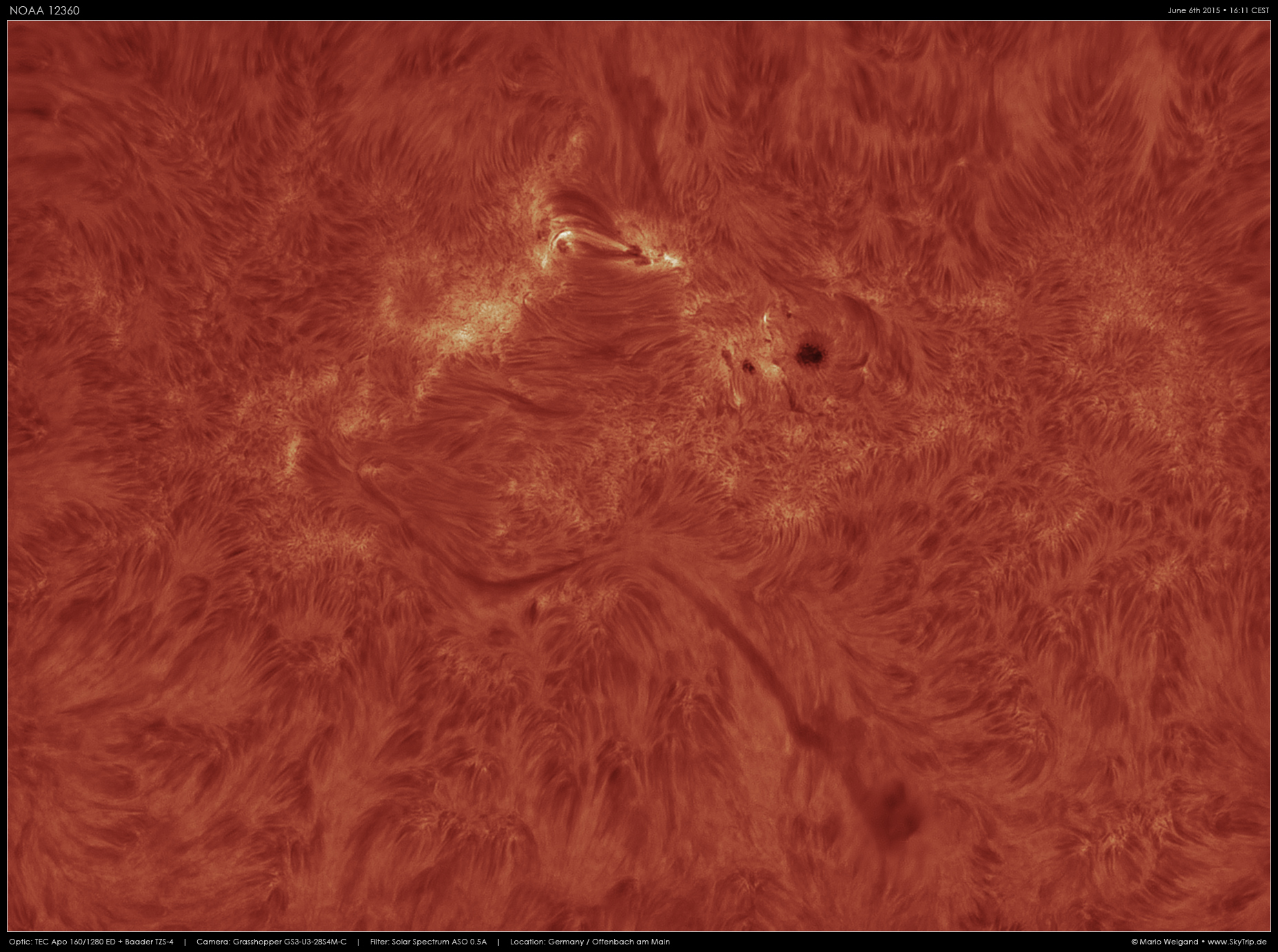 | Teleskop/Objektiv | TEC Apo 160/1280 ED + SolarSpectrum 0.5A H-Alpha-Filter |
