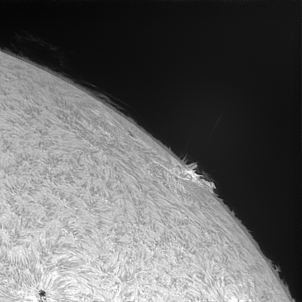 Man beachte bei diesem Bild nicht nur die Spikulen, sondern die feinen Plasmaspritzer senkrecht nach oben. Man muss genau hinschauen...