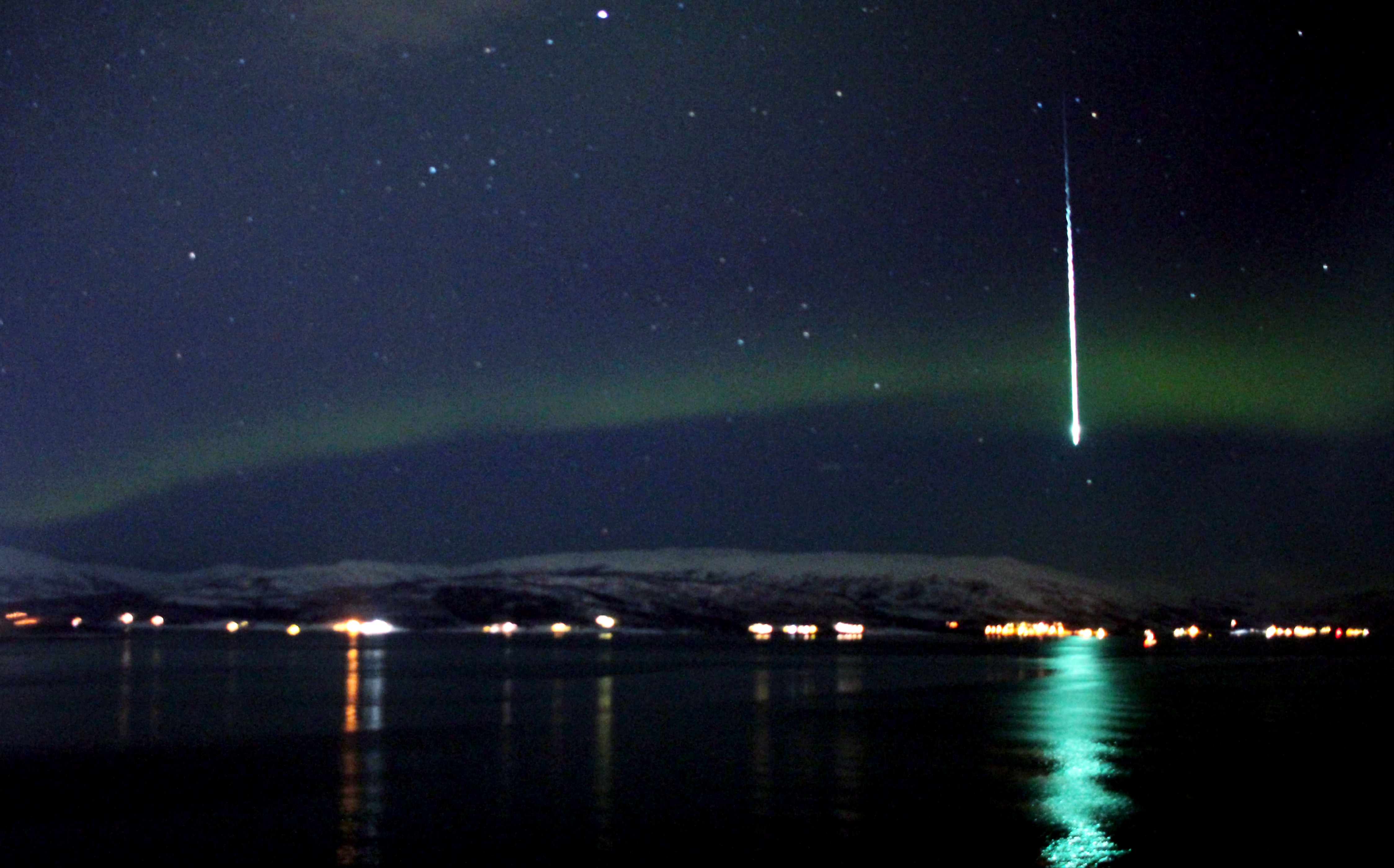 Leserbilder Astronomie: Nordlicht mit Sternschnuppe