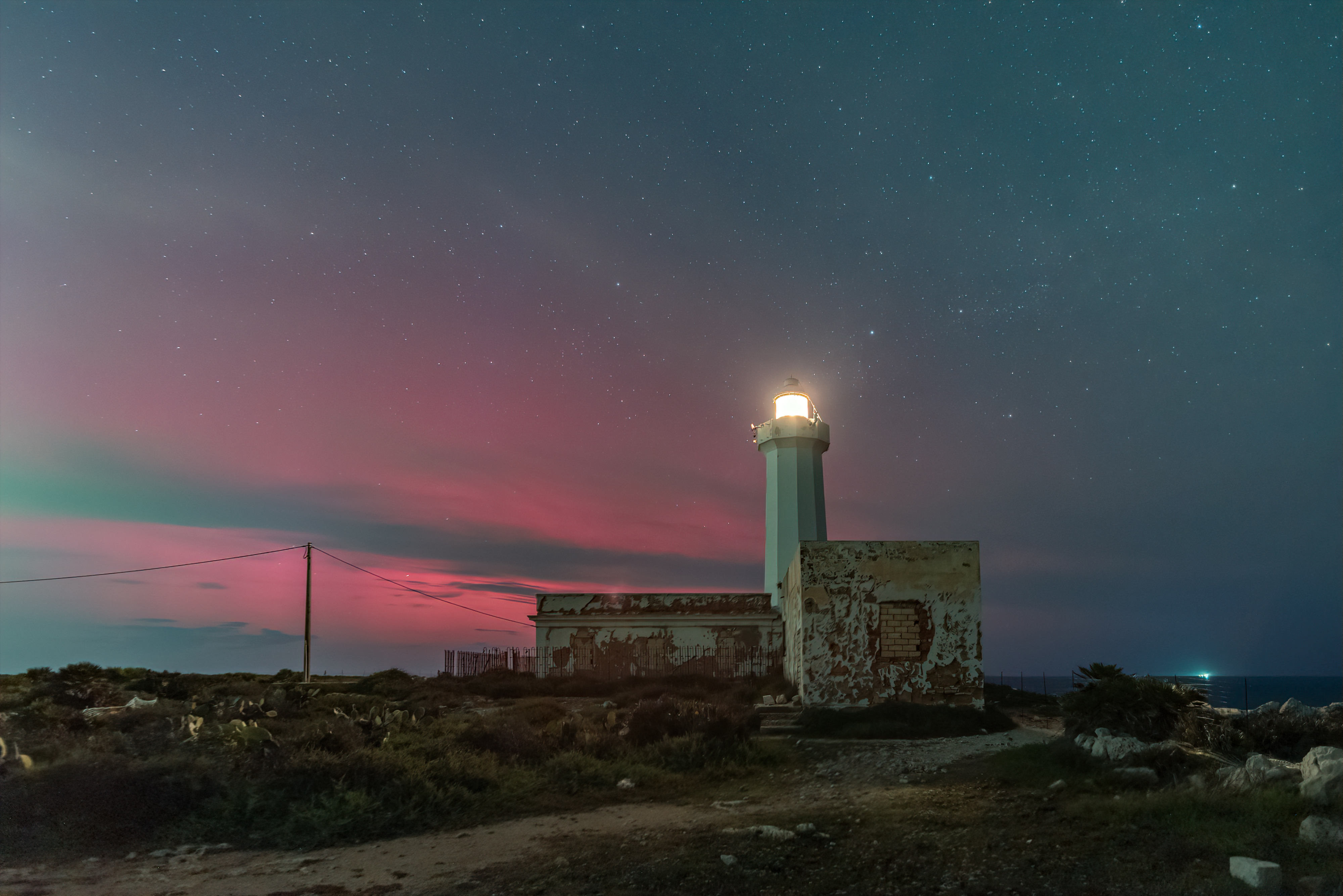 It seems like a joke, it seems like a tacky photomontage and yet it's incredibly true. An epochal event that left the whole of Italy and beyond speechless. Incredible Northern Lights also recorded in Syracuse. The powerful solar storm caused by the flares of the very large sunspot AR 3664 brings the lights of the aurora to our latitudes. Never seen anything like this in 53 years. Location: Capo Murro di Porco lighthouse Plemmirio (Syracuse)