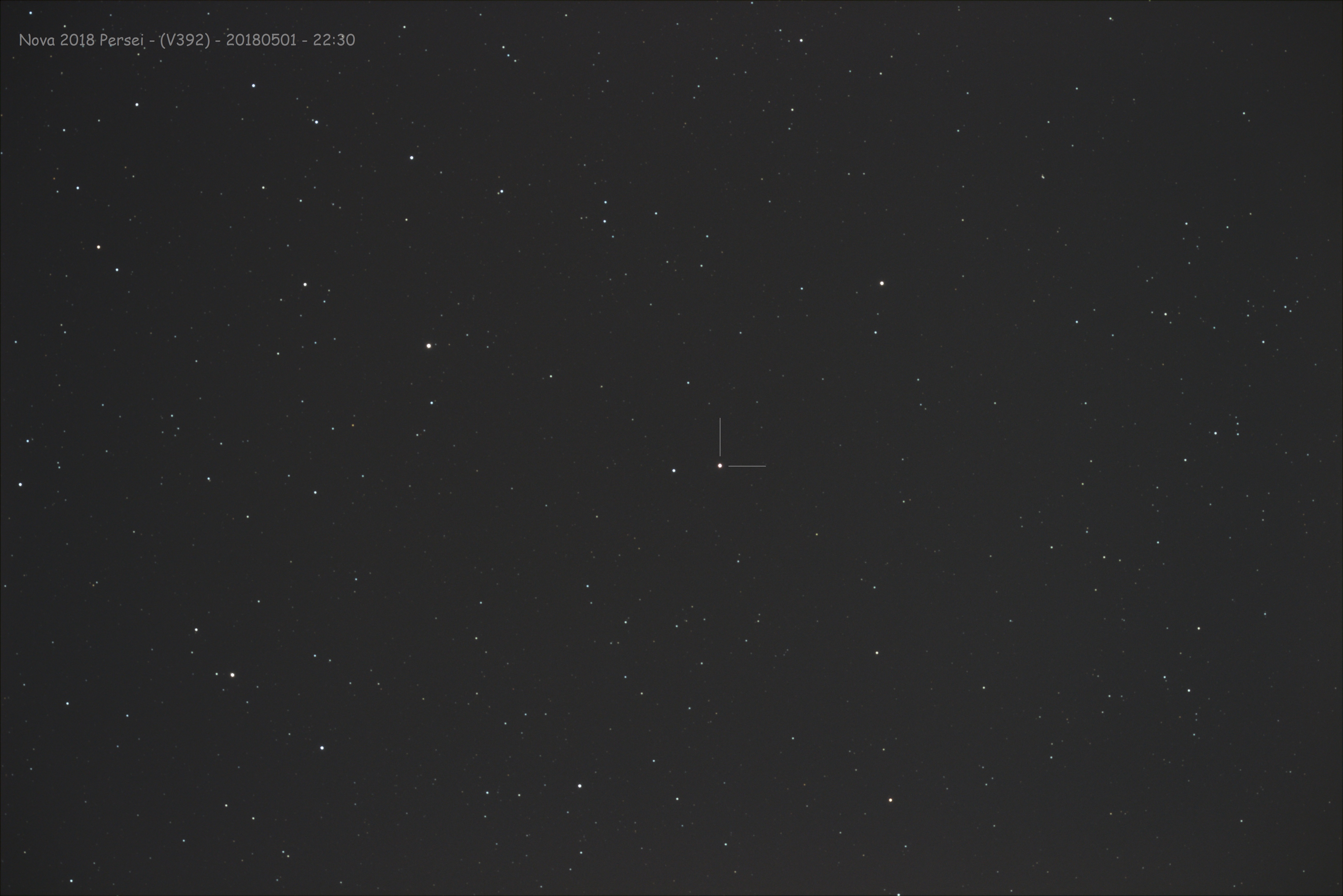 Wahrscheinliche Nova-Explosion der Zwergnova V392 Perseus. Seit Vorgestern in aller Munde, diese erst frisch entdeckte Zwergnova im Perseus. Gestern gegen 22:30 Uhr bei uns noch gut sichtbar mit 6,2 mag - wohl auf dem Maximum - fällt die Helligkeit offenbar schon wieder ab … heute Morgen auf 6,9 mag. Da bleibt wohl noch so einiges zu erklären …