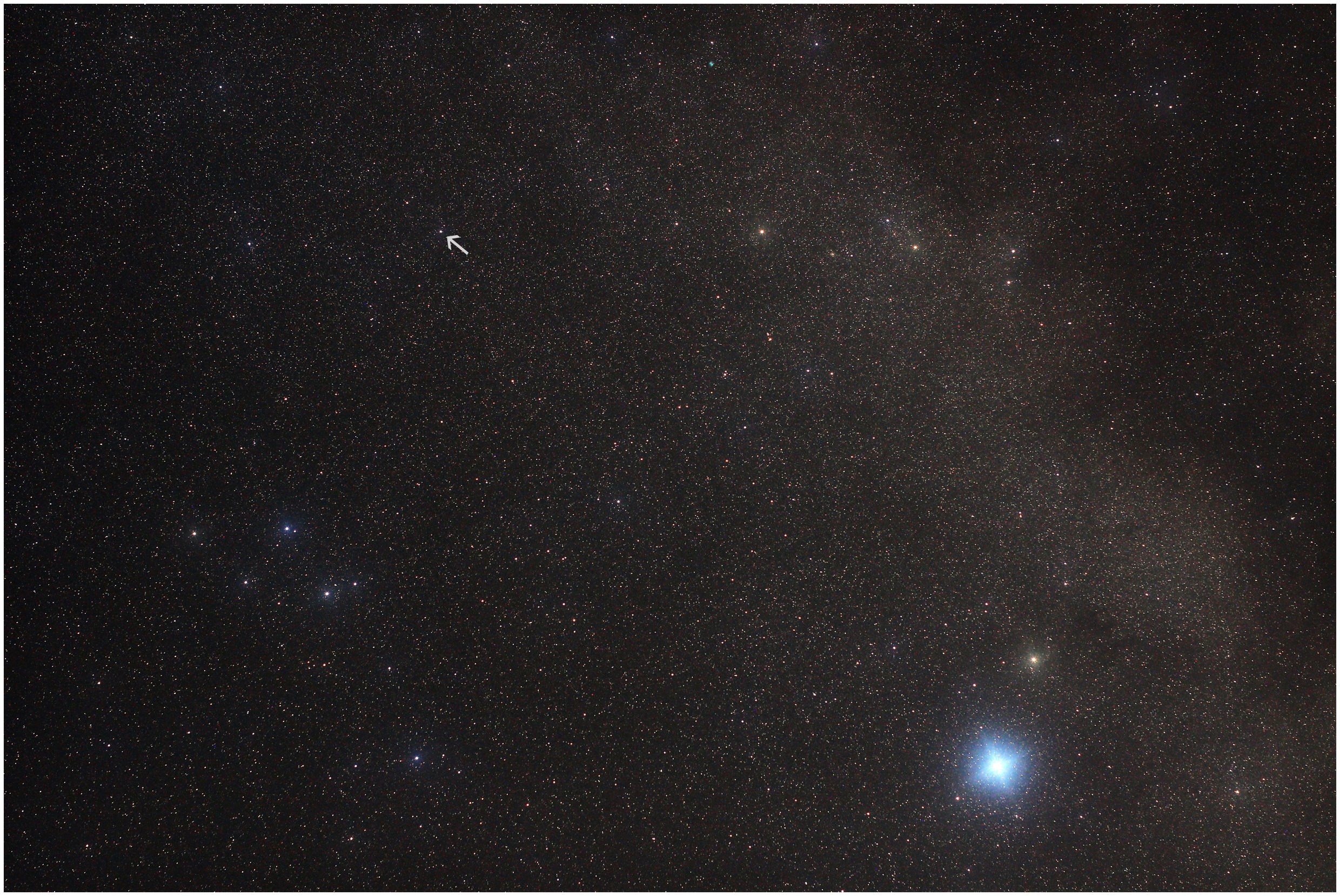 Ein "neuer" Stern im Sternenmeer nordöstlich von Atair, dem hellsten Stern im Sternbild Adler. Dank ihrer Helligkeit und der benachbarten, auffälligen Sternbilder Delfin und Pfeil, ist die Nova schon mit einem Fernglas leicht zu finden.