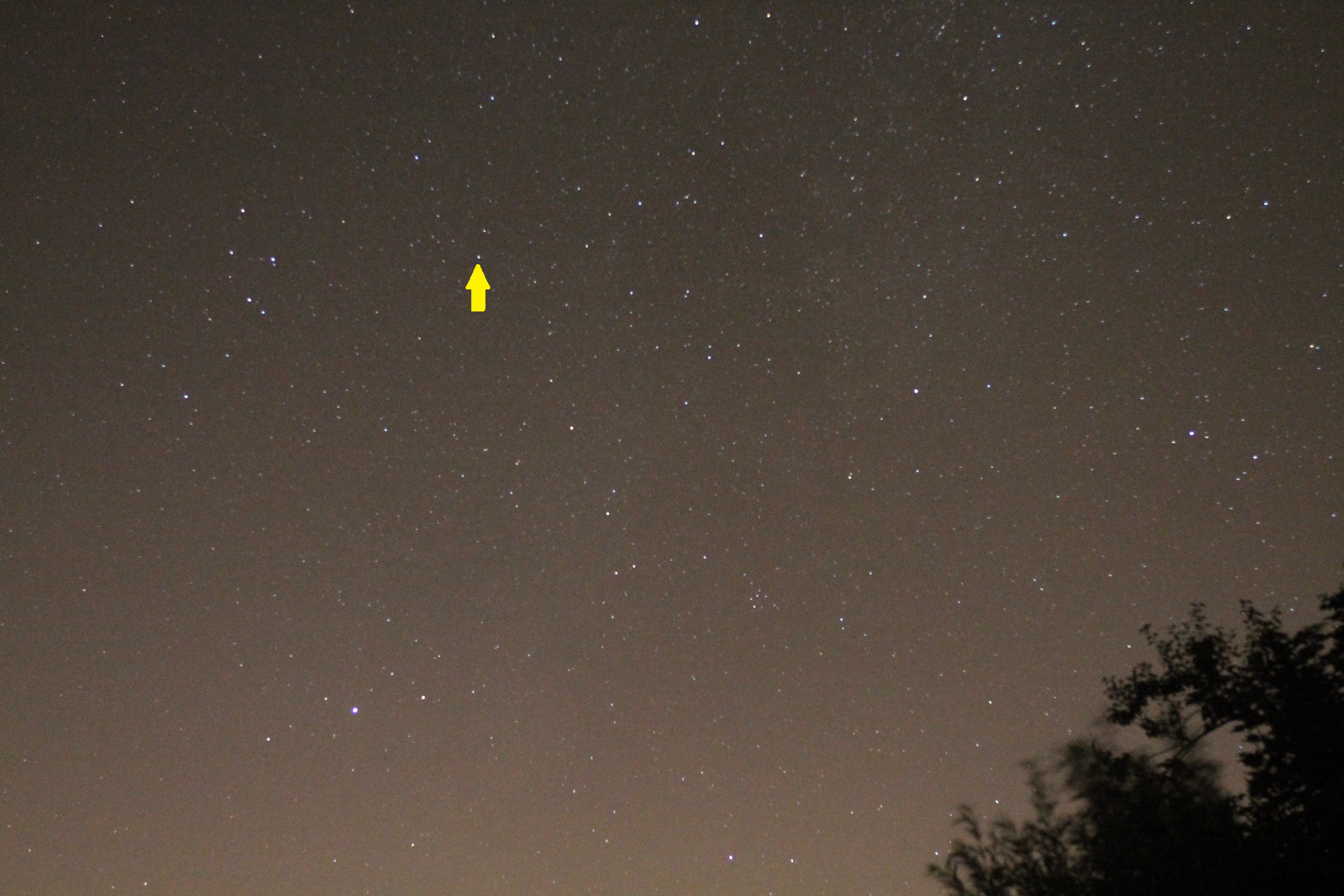 Nova Delphini, fotografiert am 17.8.2013. Position ist mit einem Pfeil markiert.
