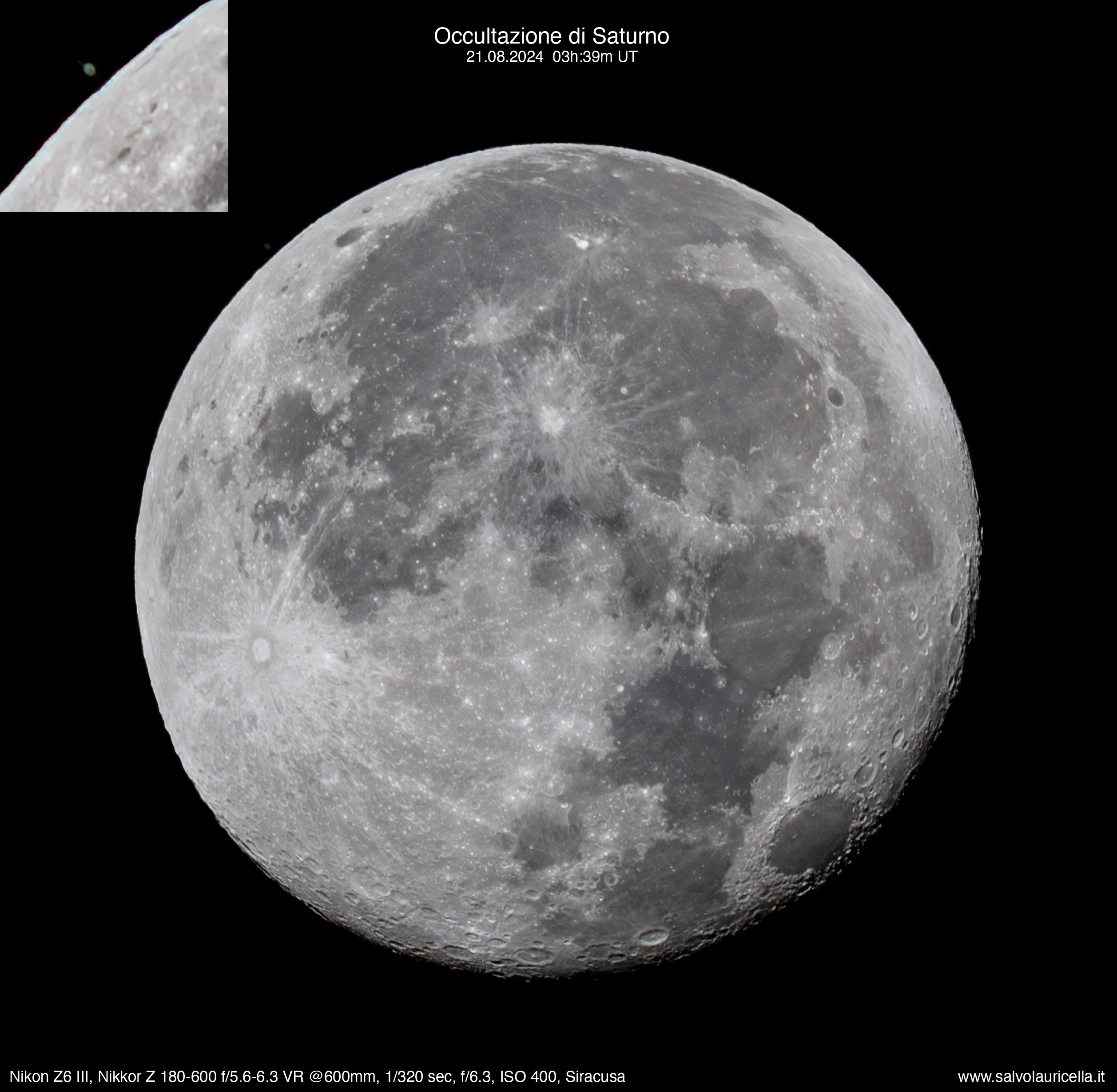 Occultation of Saturn taken on August 21, 2024 at 3:39 UT from Syracuse, Italy.