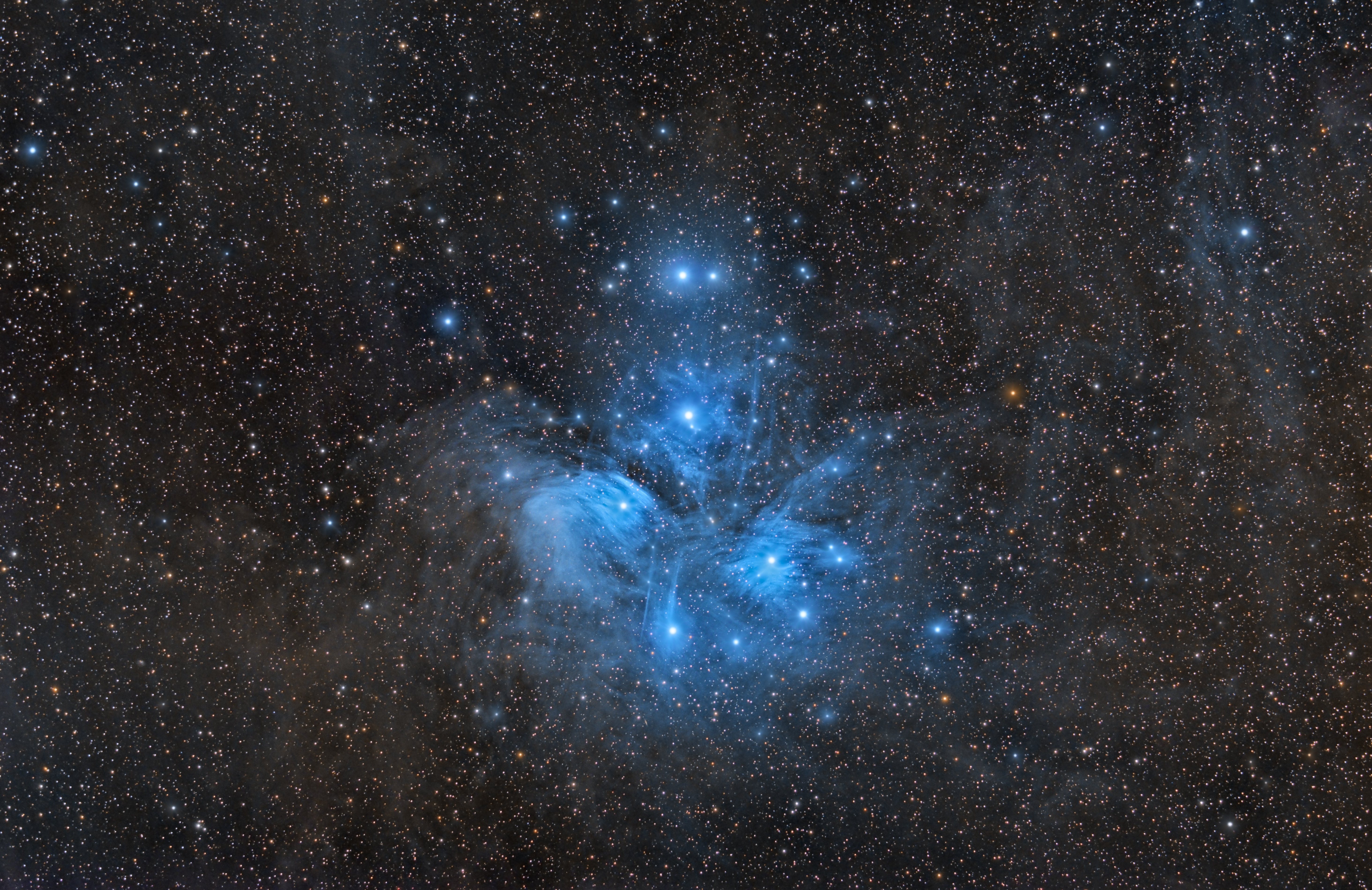 Mit über 200 Einzelbilder zu je 3 Minuten wollte ich herausfinden, wie viel Umgebungsstaub um die Plejaden abgelichtet werden kann. Das war wegen der Lichtverschmutzung nicht ganz einfach.