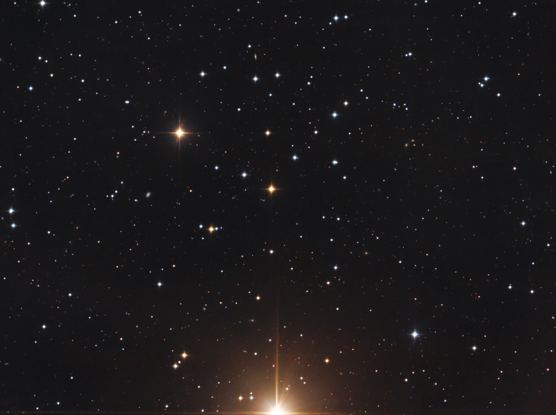 Was für ein mystisches Motiv – der offene Sternhaufen ESO 245-09 über dem hell leuchtenden Stern 'psi Phoenix'. Größe 14 Bogenminuten / Objektklasse: 4-2-p-*